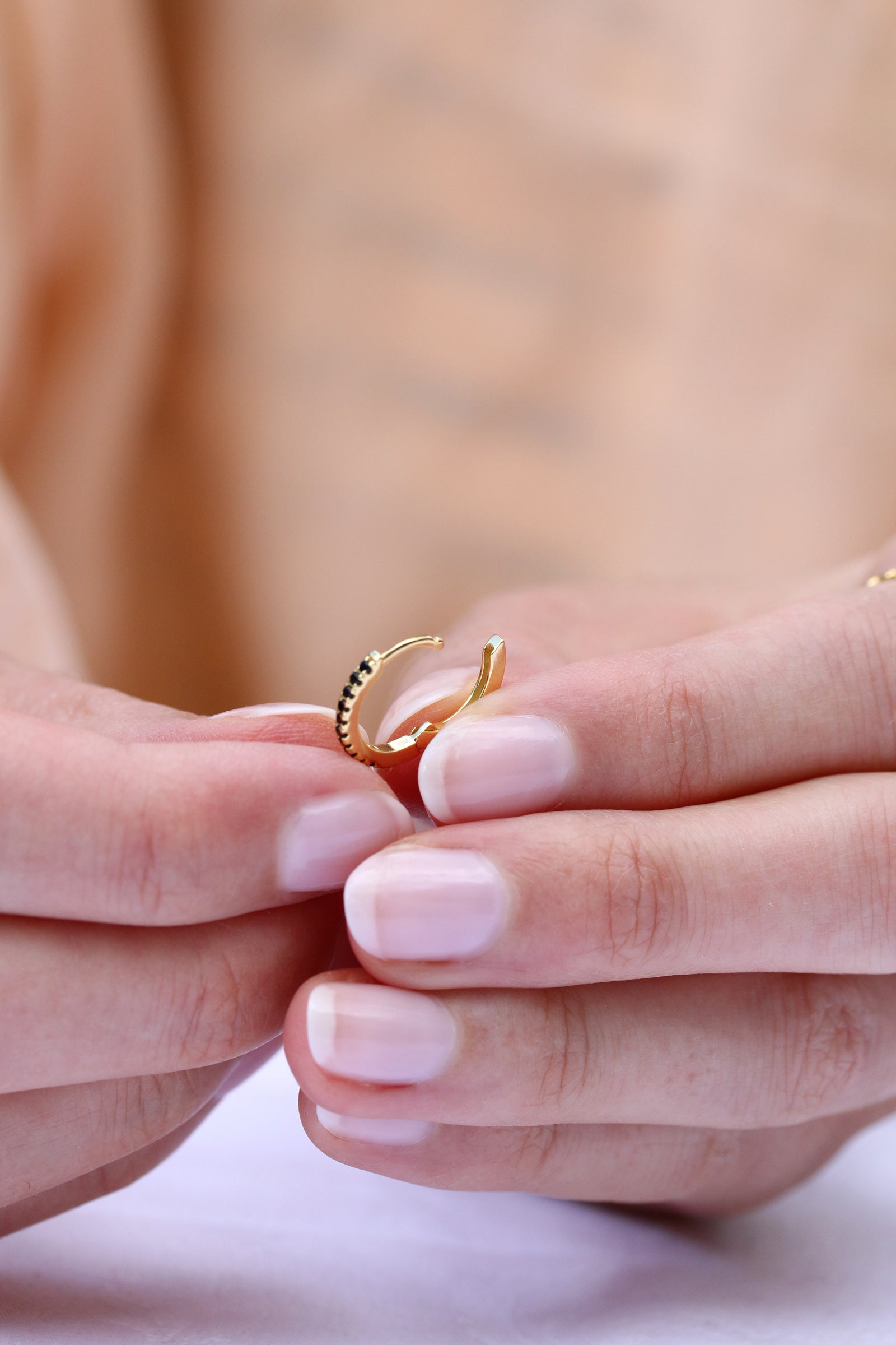 Setze zart funkelnde Highlights mit der Creole Noir aus vergoldetem 925 Silber. Zahlreiche schwarze Zirkonia machen jeden Tag zu einem Diamond Day. Dank Gelenkverschluss ist der Ohrring einfach in der Handhabung. Die Creole ist in 9 mm und 6 mm erhältlich.