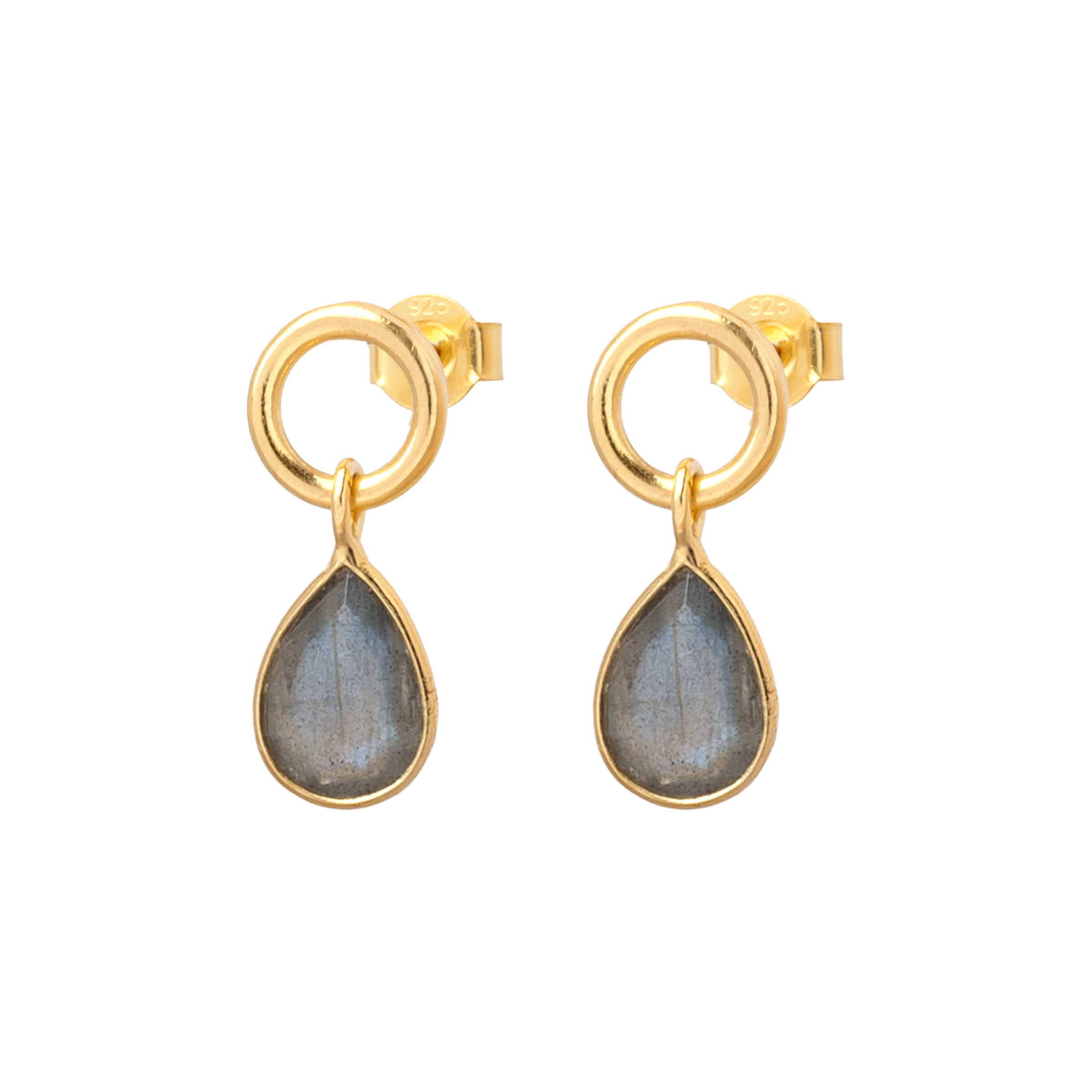 Gefertigt aus feinstem 925er Sterlingsilber und veredelt mit einem strahlenden 18-Karat-Gold-Finish, setzen diese Ohrstecker ein stilvolles Statement. Im Mittelpunkt steht ein tropfenförmiger, grauer Labradorit, der mit seinem natürlichen, schimmernden Farbspiel fasziniert und jedem Look eine edle, geheimnisvolle Note verleiht.