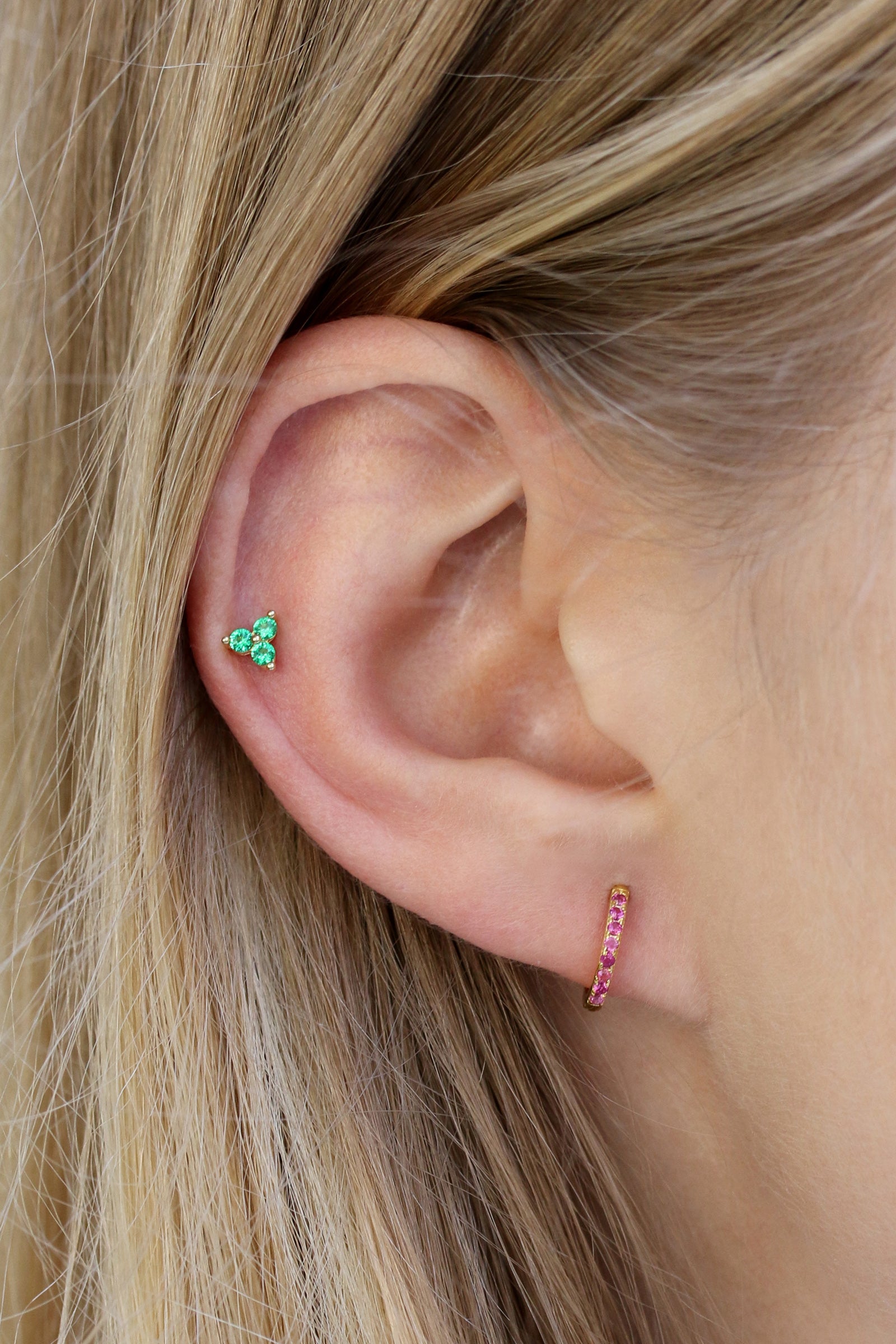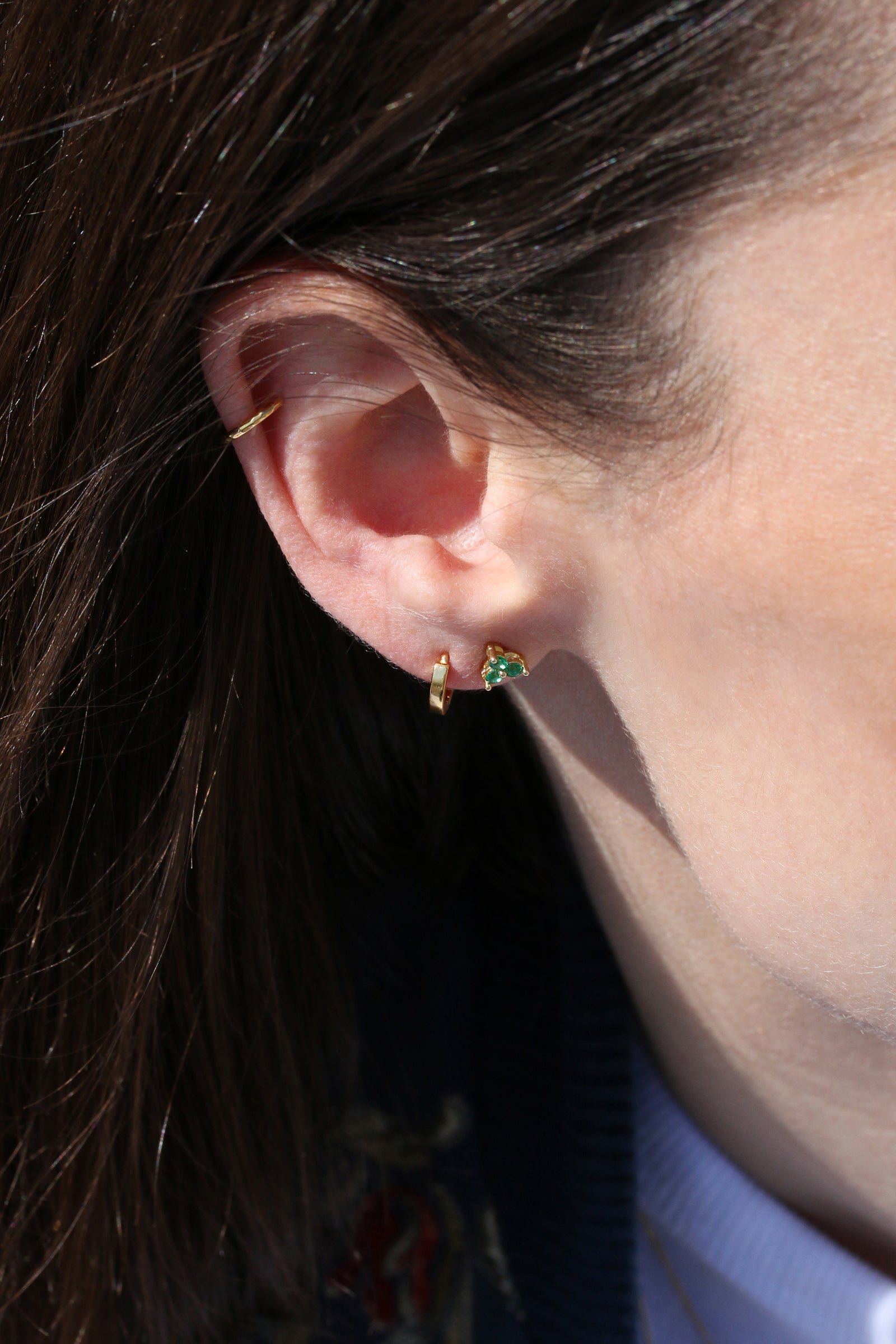 Eine kleine Blütenpracht bildet der Ohrstecker Daisy in einem frischen Kiwi-Grün. Die dreieckig angeordneten Zirkonia gibt es auch in Violett, Schwarz, Pink und Orange in unserem Sortiment.