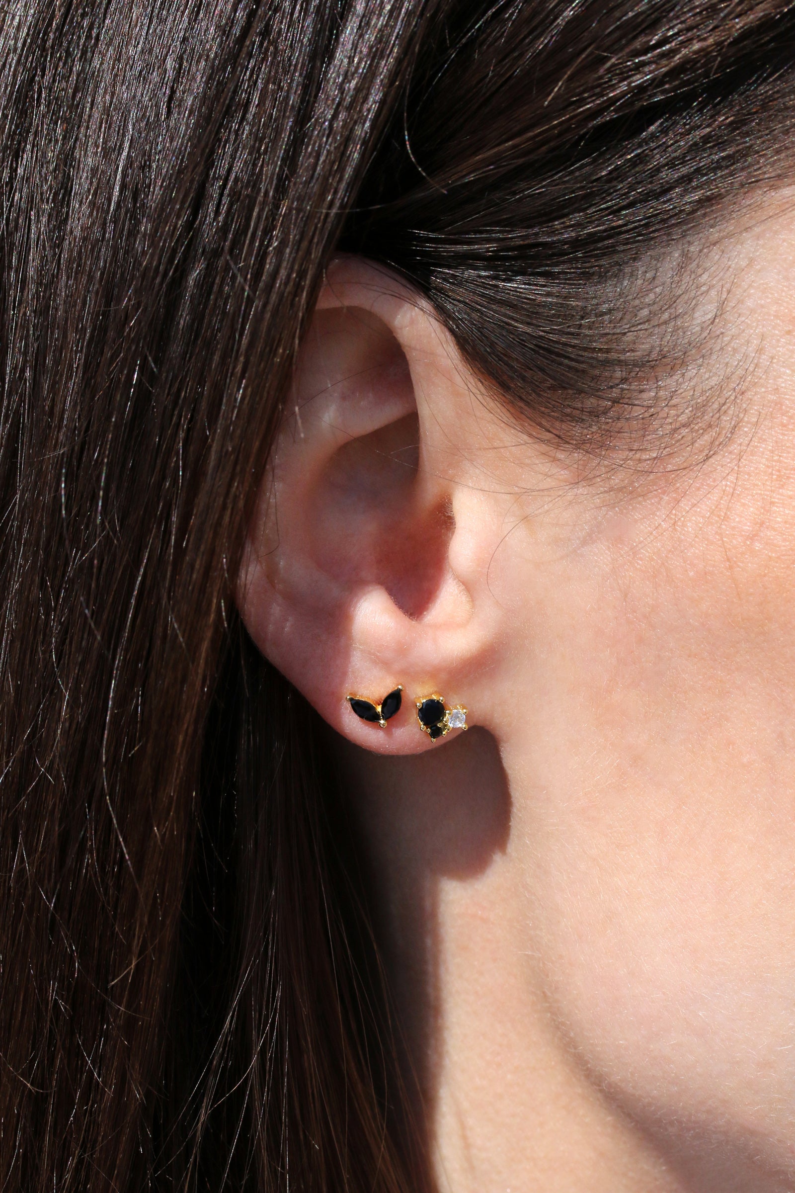 Der Ohrstecker Black Diamond ist eine Trilogie aus zwei schwarzen Zirkonia unterschiedlicher Größe mit einem funkelnden Kristall. Die Steine sind dreieckig angeordnet und machen den 4x6 mm kleinen Stecker zum eleganten Earpiece für die Ewigkeit.