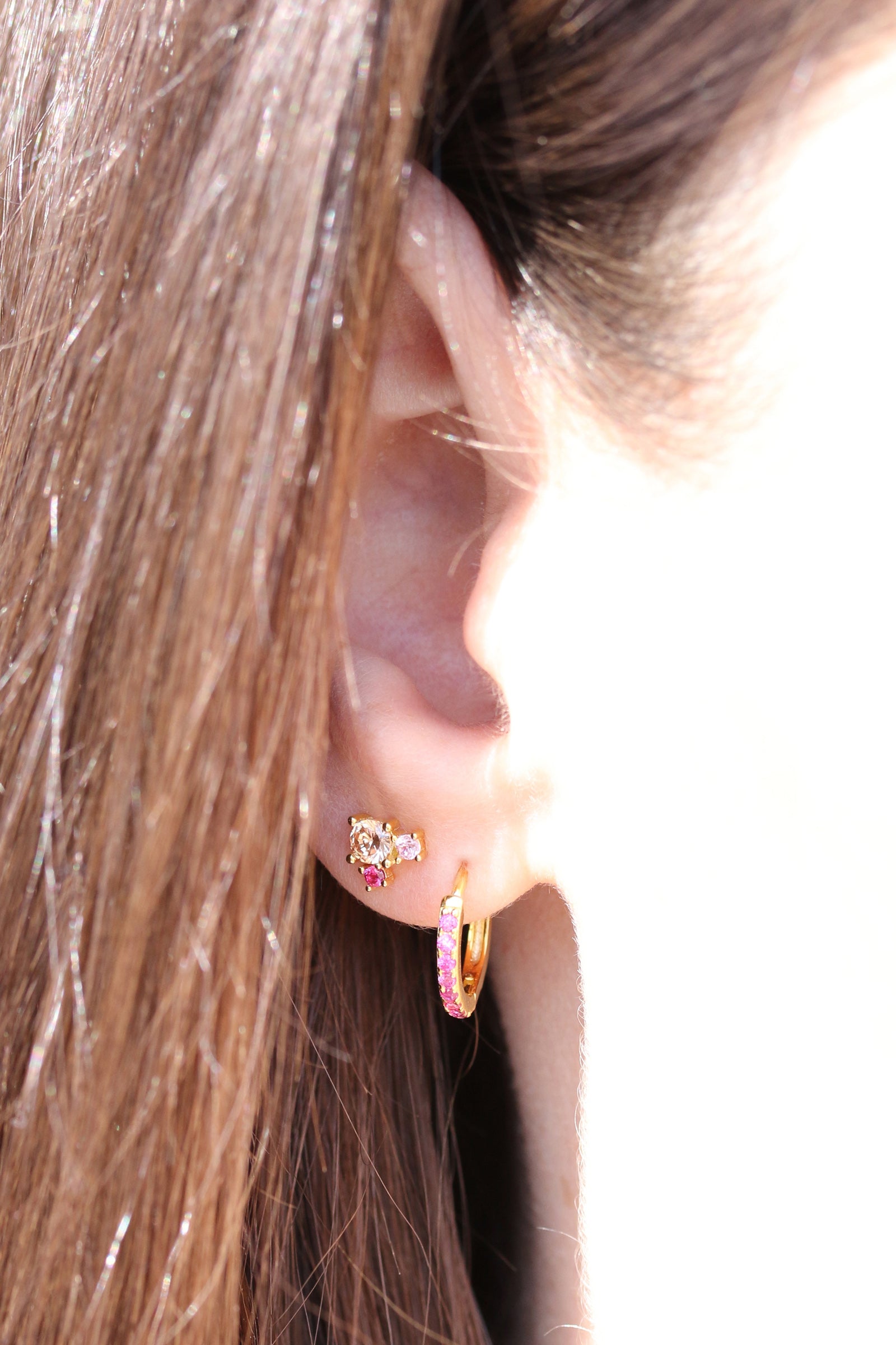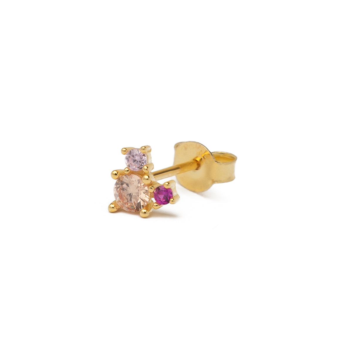 Der Ohrstecker Klimt Fuchsia ist ein Kunstwerk aus drei funkelnden Zirkonia in Pink, Satin und Lemon. Die Steine sind dreieckig angeordnet und machen den 4x6 mm kleinen Stecker zum eleganten Earpiece für die Ewigkeit.