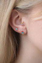 Für einen türkisen Farbtupfer am Ohr sorgt unser Ohrstecker Flower aus der Tosca-Reihe. Die dreiblättrige Blüte wird, eingebettet von drei Zirkonia, zum funkelnden Highlight.