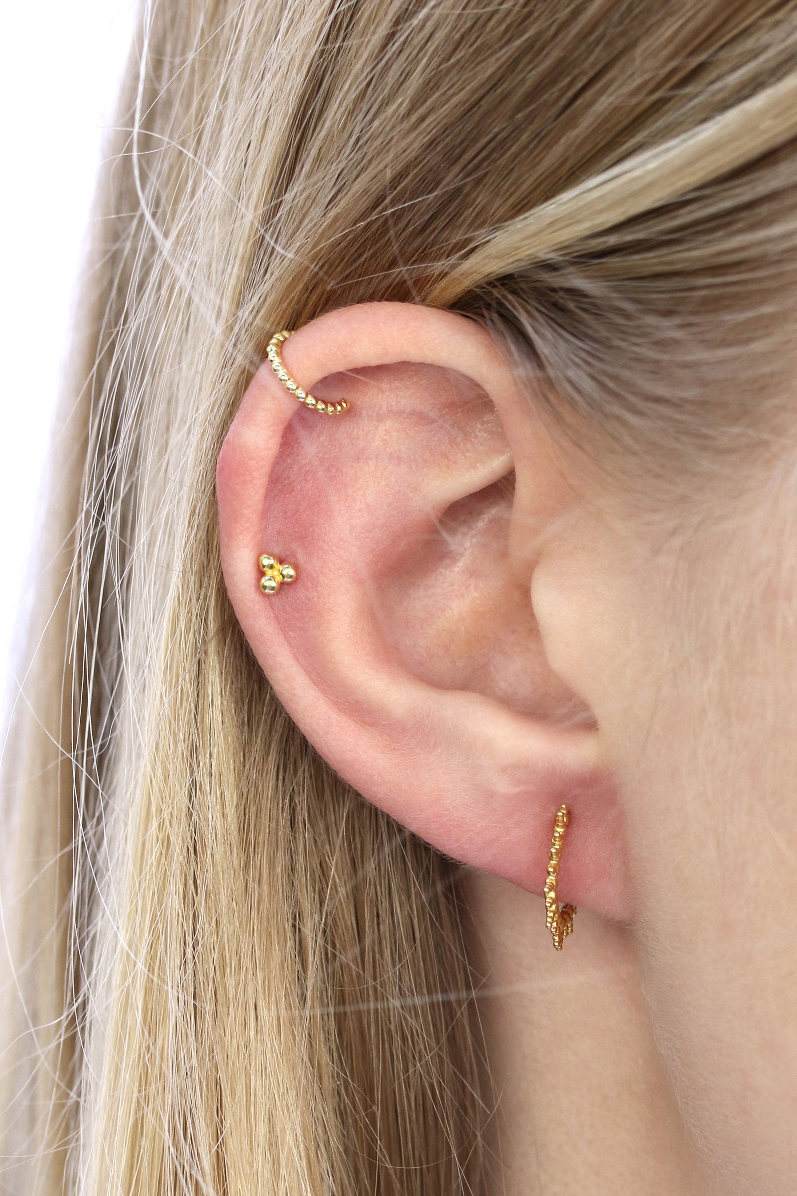 Schlicht und ergreifend ist der Ohrstecker Trio Dot aus 925 Silber. Nur rund 3x3 mm groß, sind die drei vergoldeten Pünktchen das i-Tüpfelchen am geschmückten Ohr. In unserer Dot-Reihe findest du den Ohrring auch in der Variante Single und Duo.