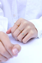 Der Ring ist aus 925 Silber und mit einer 18k Goldschicht veredelt. Das Ringband misst ca. 1 mm. Der ovale Halbedelstein misst 4 x 2,5 mm. Es handelt sich um Natursteine, die sich in Firm und Farbe unterscheiden und daher vom Bild abweichen können. Das Modell gibt es auch mit Blauem Topaz, grauem Labradorit und Rosenquarz in unserer Sweet-Gem-Serie.