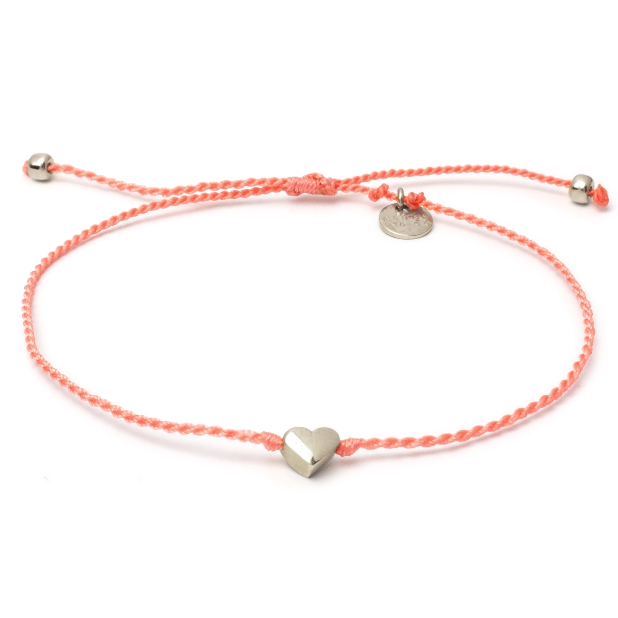 Love is in the Air … und an deinem Handgelenk. Ein zierlicher Herz-Anhänger an einem farbigen Nylonband bildet den Mittelpunkt unseres Amore-Armbands. Der Anhänger ist aus versilberten Messing und misst ca. 5 mm.