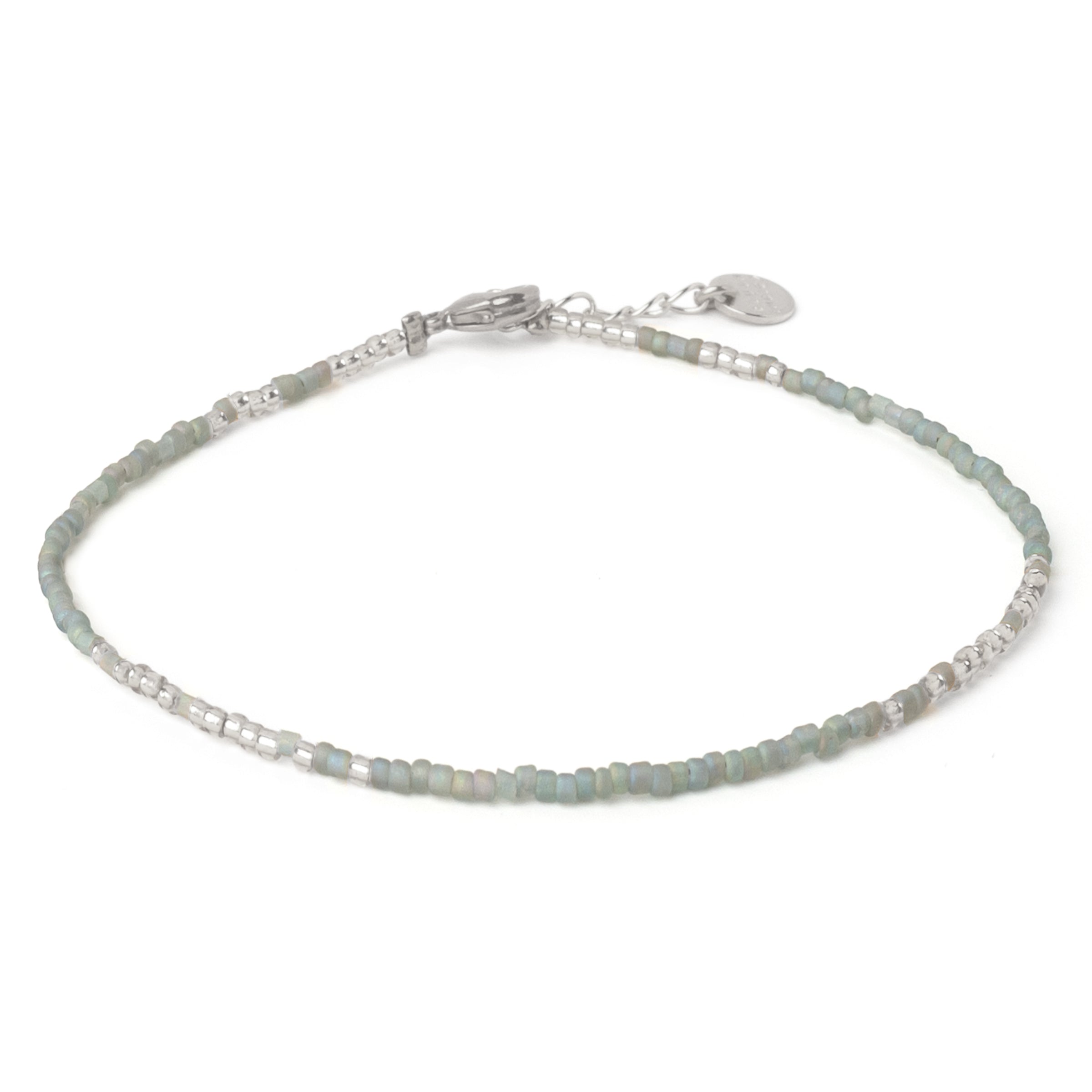 Zart schimmernde Glasperlen in Frosted Grey verbinden sich mit feinen Silberakzenten zu einem Armband voller eleganter Leichtigkeit. Ob romantisch kombiniert oder als dezenter Blickfang solo getragen – dieses Accessoire in stilvollen Grautönen setzt immer ein edles Statement.