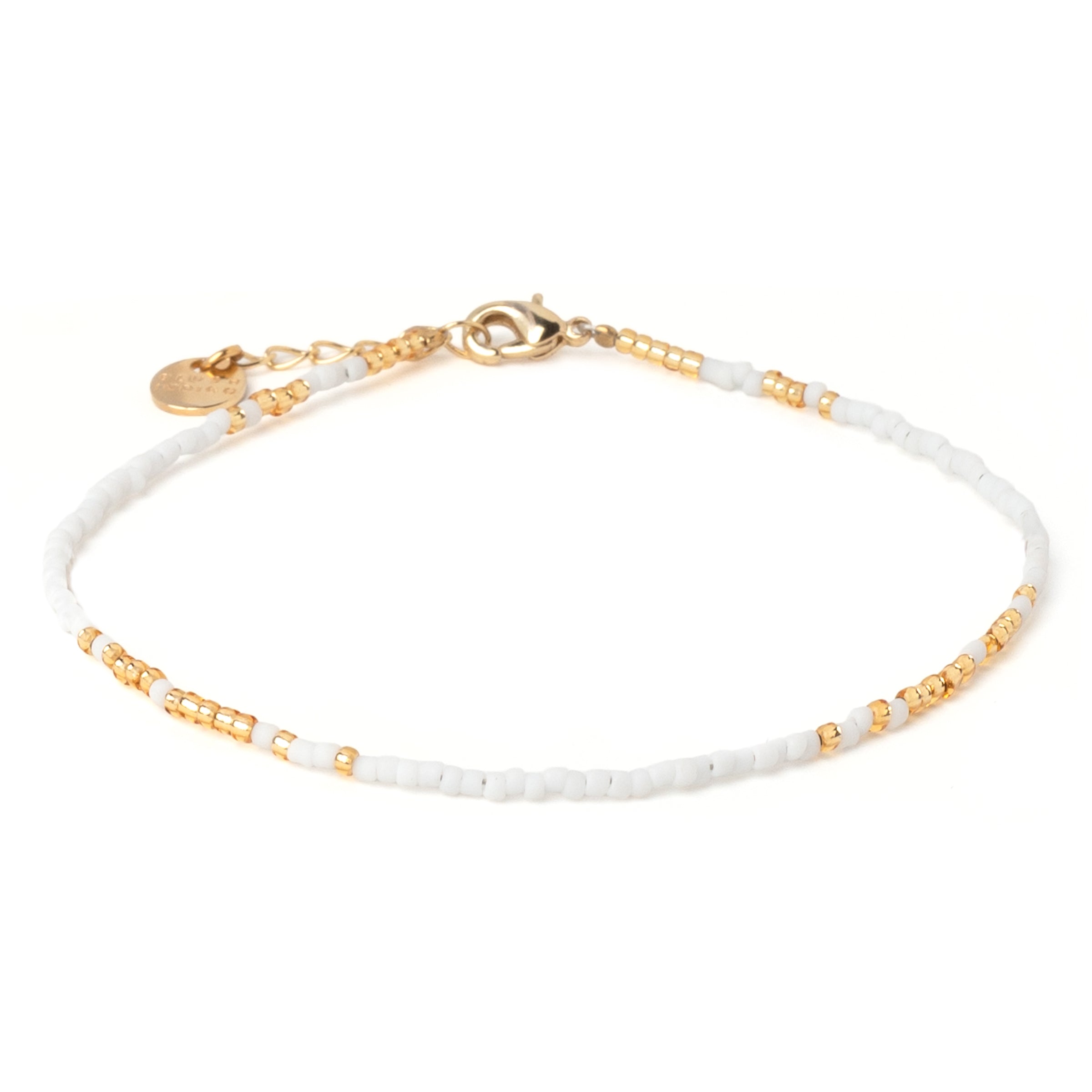 Gefertigt aus winzigen Glasperlen der renommierten japanischen Manufaktur Matsuno, schließt das Armband mit einem eleganten Karabiner. Die Länge beträgt 16 cm und lässt sich dank eines Verlängerungskettchens um 2 cm anpassen.