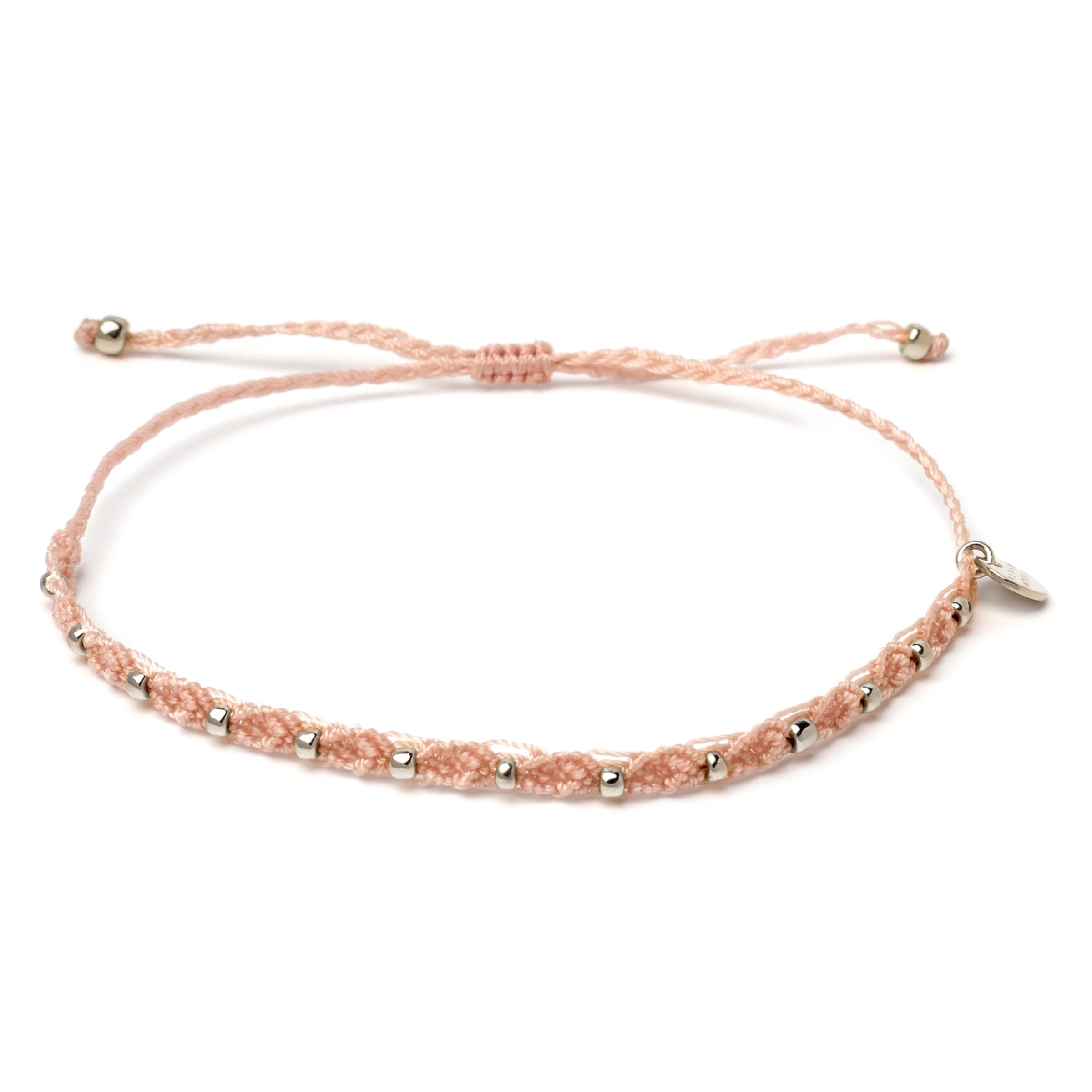 Makramé bezeichnet eine aus dem Orient stammende Knüpftechnik zur Herstellung von Ornamenten, Textilien oder Schmuck. Alle Armbändchen werden in Bali und Java handgeknüpft und mit Liebe zum Detail mit silbernen Glasperlen bestickt.
