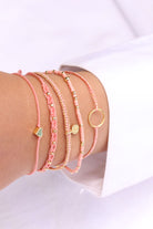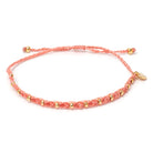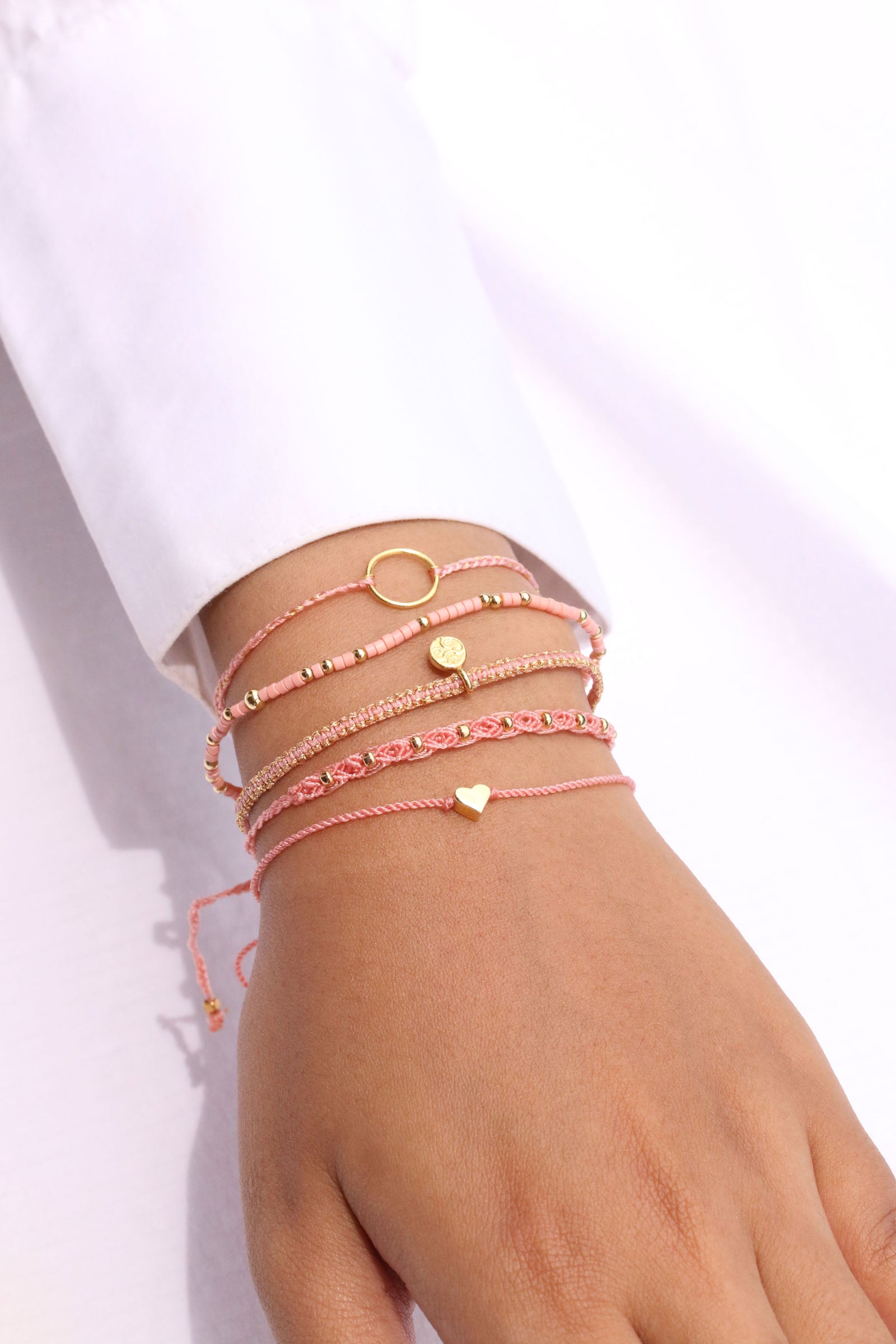Unser einfarbiges Makramé-Armband Cleo kommt in allen Farben des Regenbogens daher. Das Modell in einem eleganten Altrosa hat einen verstellbaren Knotenverschluss und mit Perlen verzierte Endstücke.