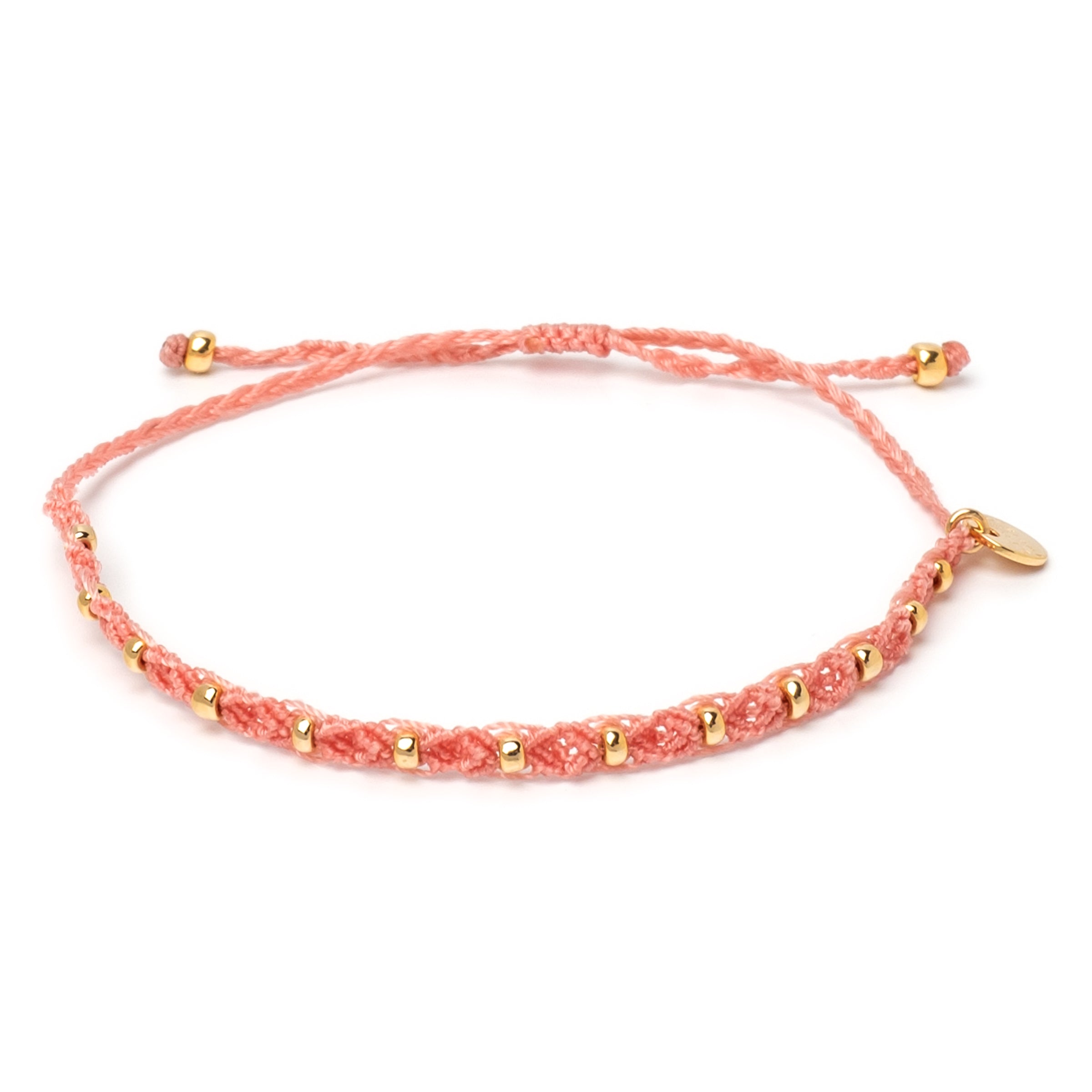 Makramé bezeichnet eine aus dem Orient stammende Knüpftechnik zur Herstellung von Ornamenten, Textilien oder Schmuck. Alle Armbändchen werden in Bali und Java handgeknüpft und mit Liebe zum Detail mit goldenen Glasperlen bestickt.
