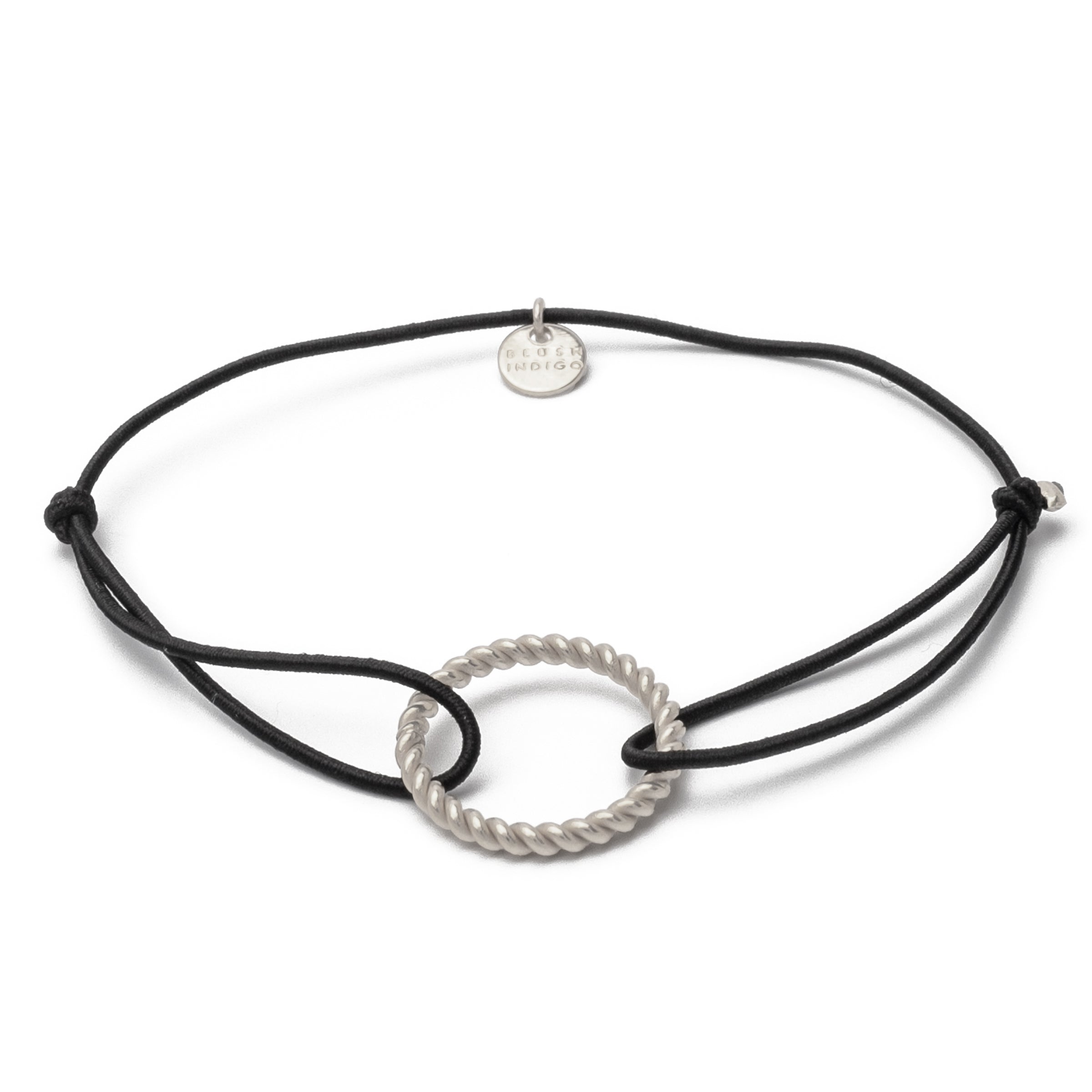 Das silberne Armband Darling Circle hat das Zeug zum Lieblingsstück in deinem Schmuckkästchen. Das elastische Nylon-Band in Schwarz schmiegt sich elegant an dein Handgelenk. Strahlender Mittelpunkt ist der gedrehte kreisförmige Circle-Anhänger aus versilberten Edelstahl.