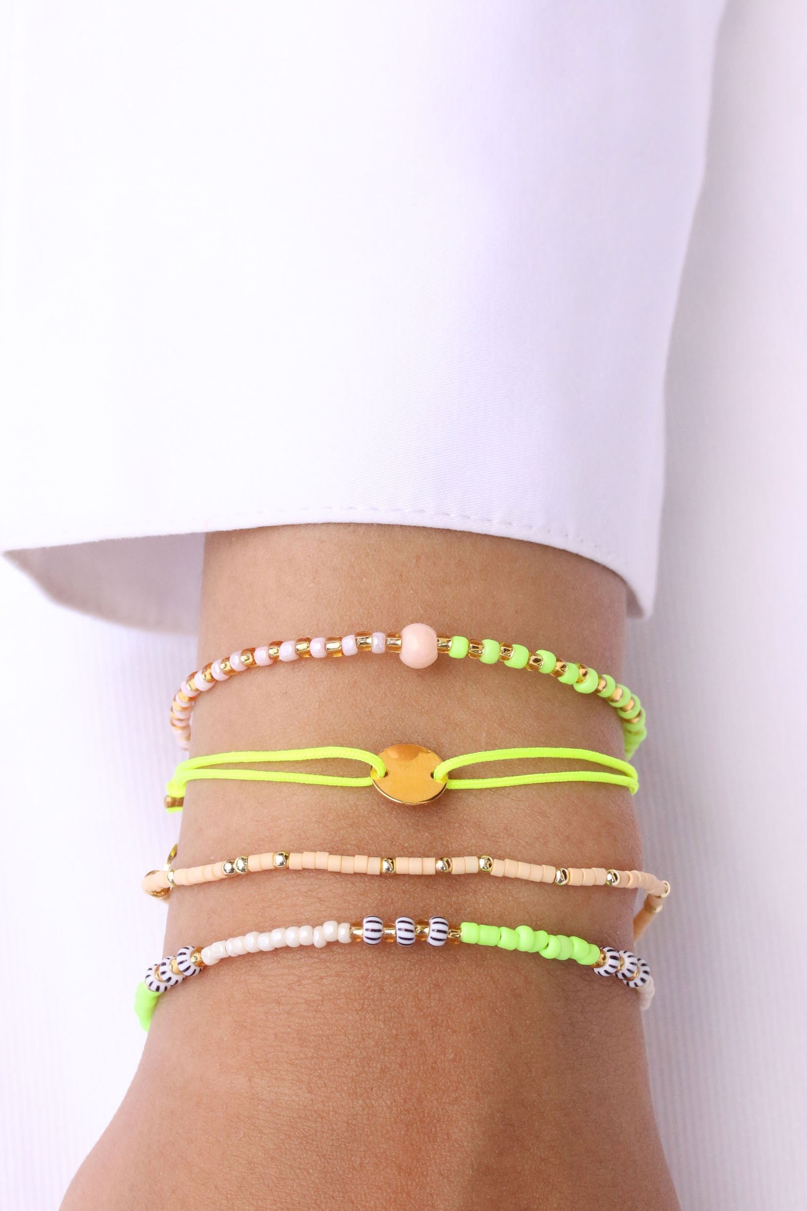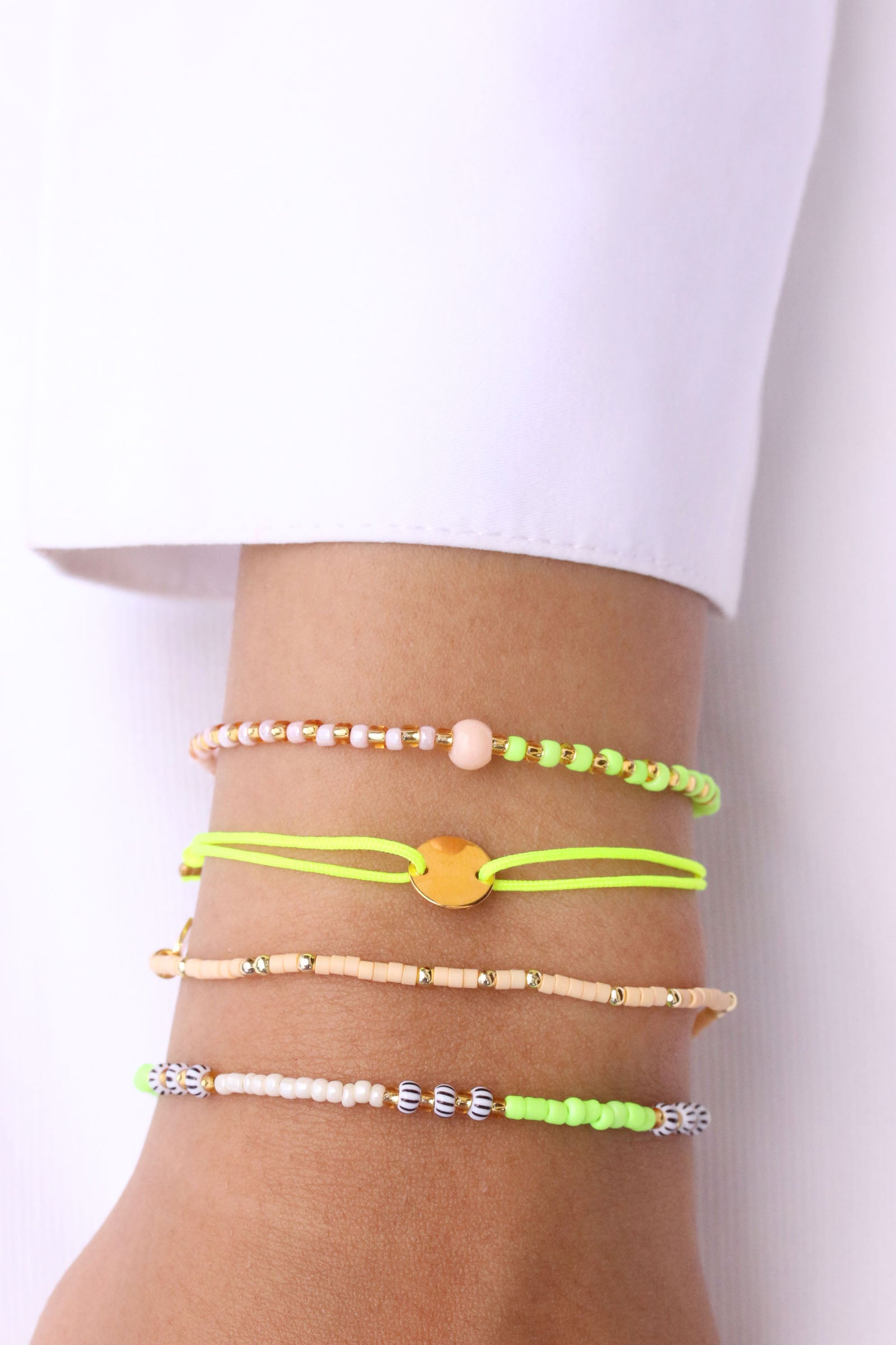 In unserer Darling Disc-Kollektion findest du noch mehr farbenfrohe Armbändchen mit versilberten und vergoldeten Plättchen.