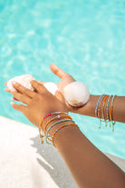 Santorini gilt vielen als die schönste und farbenprächtigste griechische Insel. Nicht weniger prächtig in Farbe ist unser Armband Santorini mit matten Rocaille-Perlen in Mintgrün, Flieder und Orange. Ein visuelles Highlight sind die facettierten Glaskristalle in Neon-Pink und Violett. Die Santorini-Serie aus unserer Greece Collection umfasst weitere Armbändchen, Fußkettchen und eine Halskette.