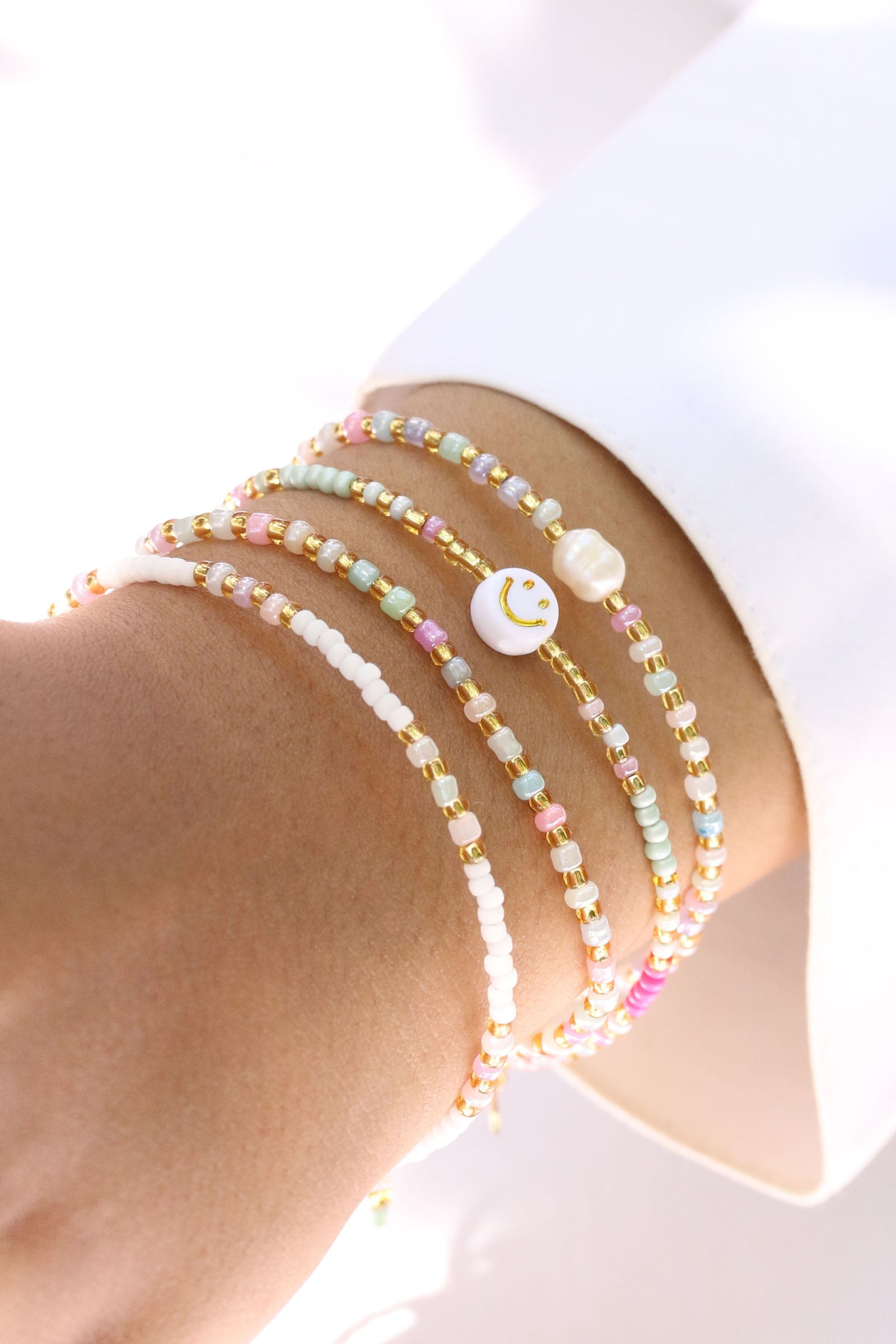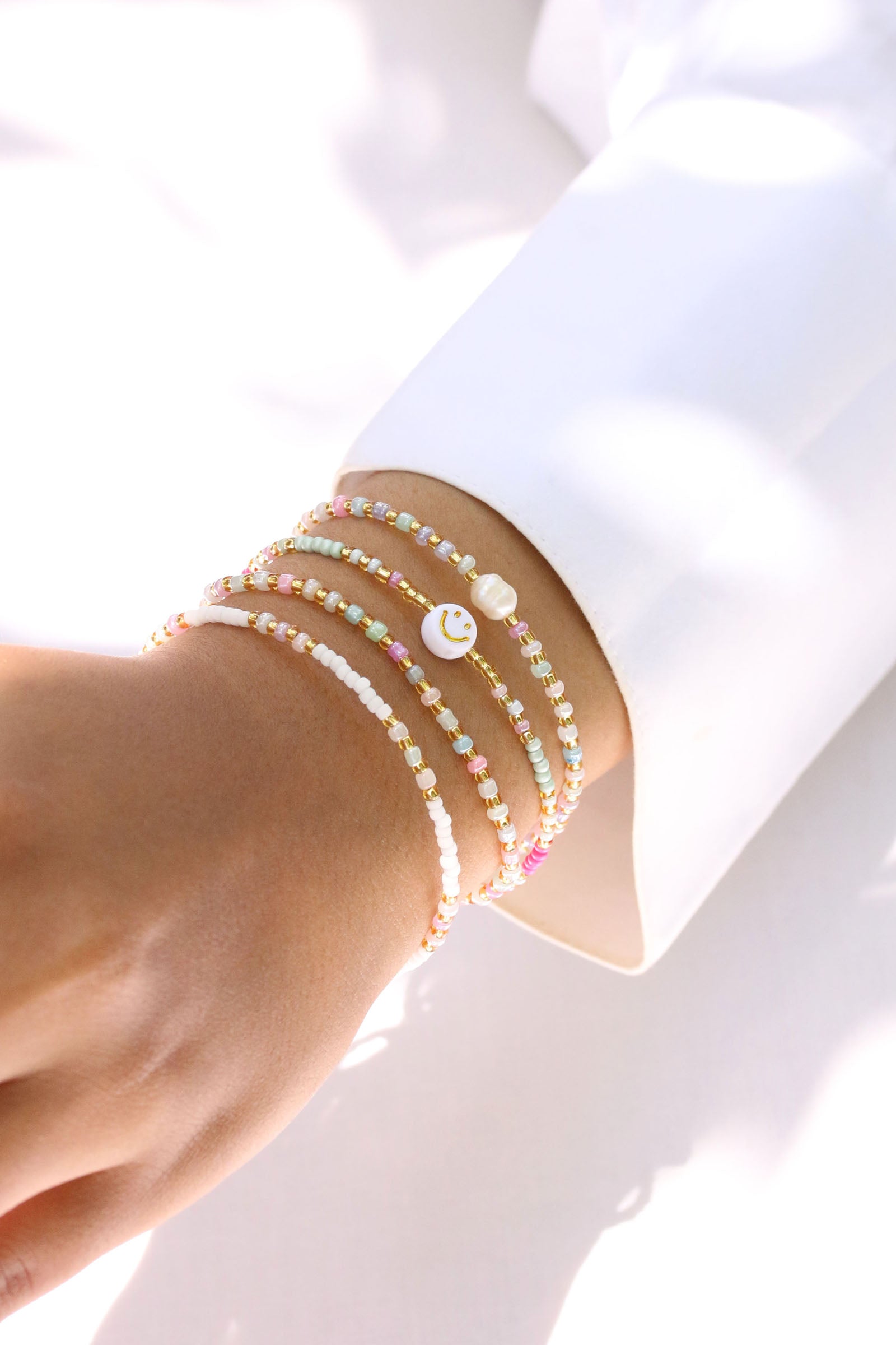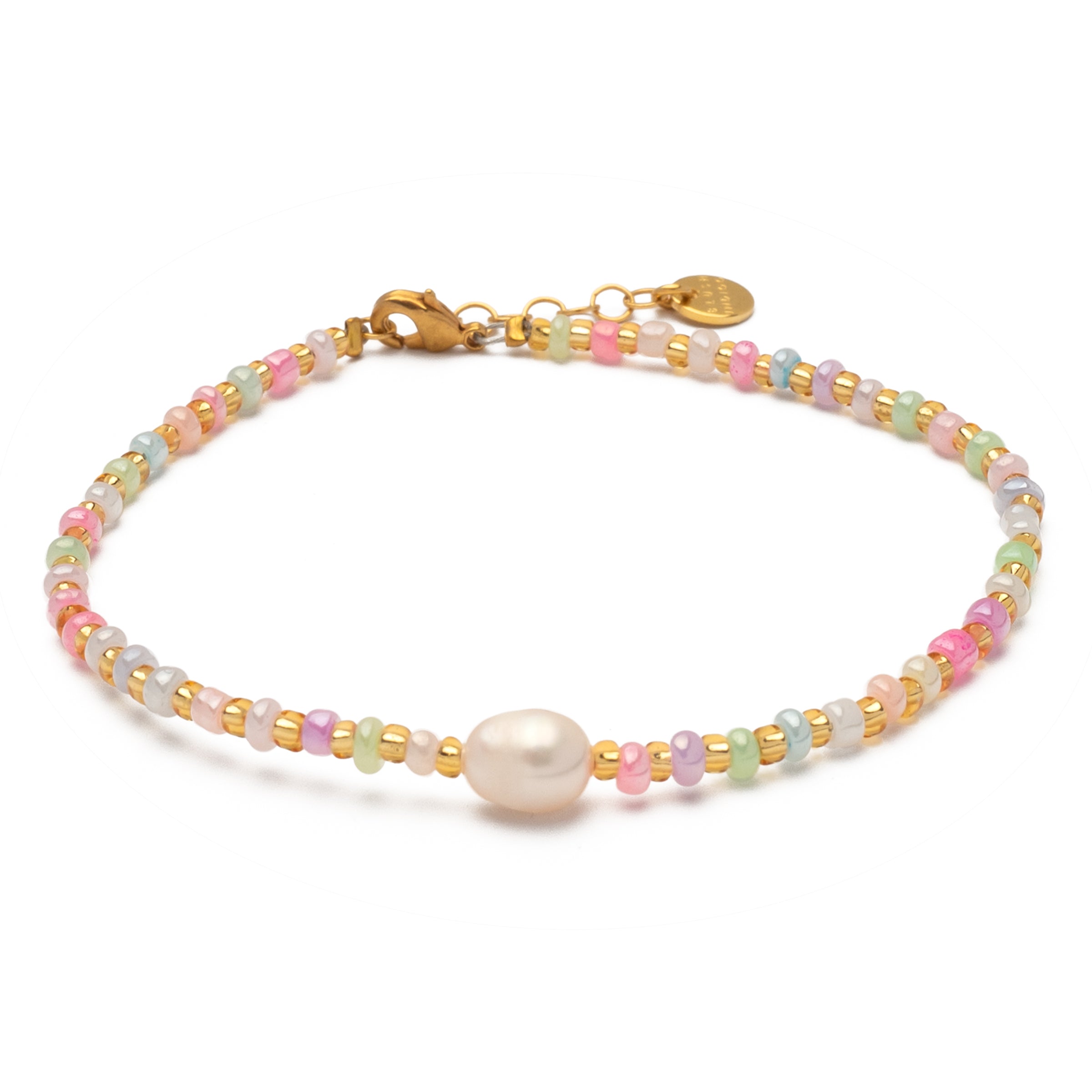 Das Bändchen Birthday Sprinkles ist der Zuckerguss auf deiner Geburtstagstorte: Bunte Roccaille-Perlen in den schönsten Bonbon-Farben versüßen dein Handgelenk und wechseln sich mit goldenen Perlen ab. In der Mitte sonnt sich eine Süßwasserperle als strahlender Partygast. Zu unserer Birthday-Serie gehört auch das Armband Smile - It's your Birthday.
