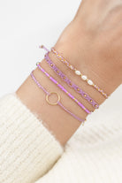 Unser einfarbiges Armband Jelly eignet sich besonders gut zum Mixen mit anderen Armbändchen. In Neon Purple bringt es strahlende Farbe in jeden wilden Armband-Mix. Vereinzelte goldenen Metallperlen setzen elegante Akzente.