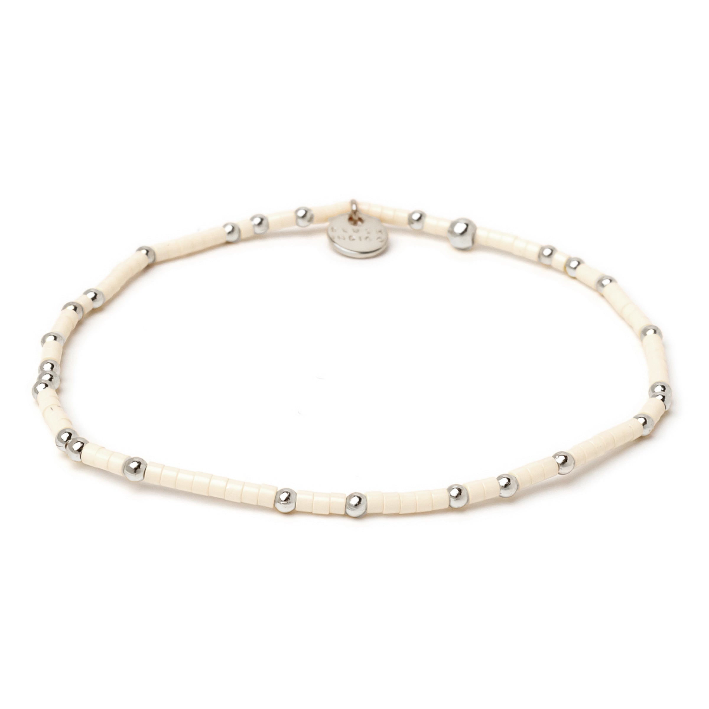 Unser cremefarbenes Jelly-Armband verleiht jedem Armband-Mix eine edle Note und sorgt für sanften Glanz – perfekt in Kombination mit kräftigen Farben oder auffälligen Mustern. Silberne Metallperlen setzen dezente, elegante Akzente.