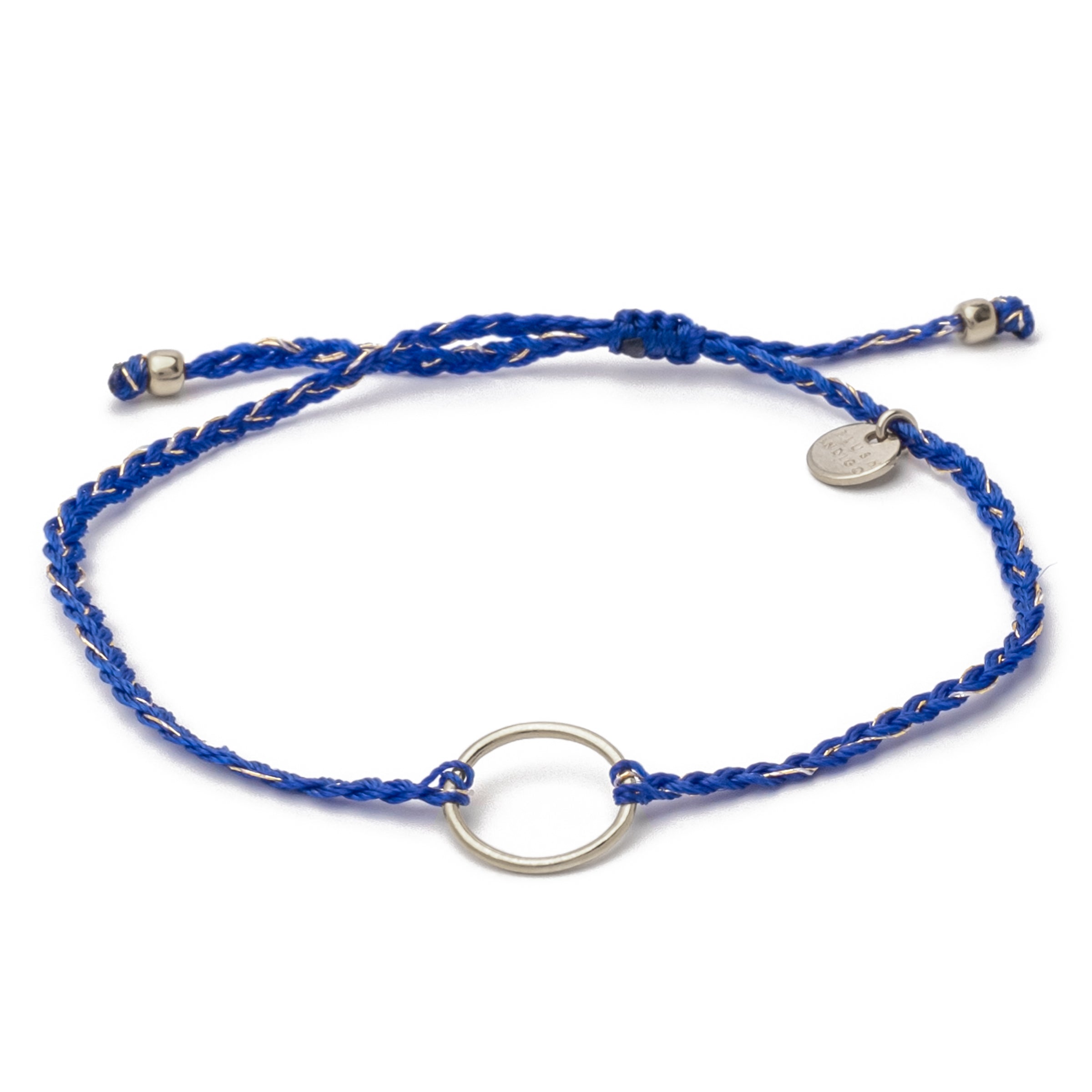 Unser geflochtenes Karma-Armband mit Kreis-Anhänger und eingewebten Silberfäden bringt eine Extraportion Glanz an dein Handgelenk.
