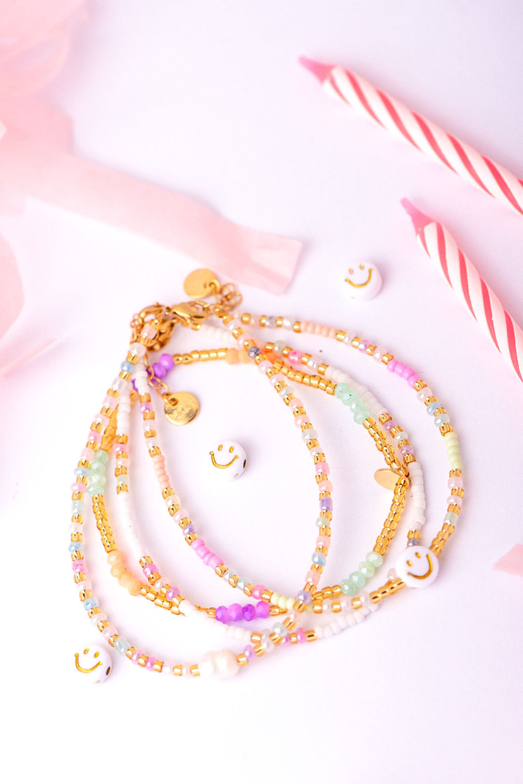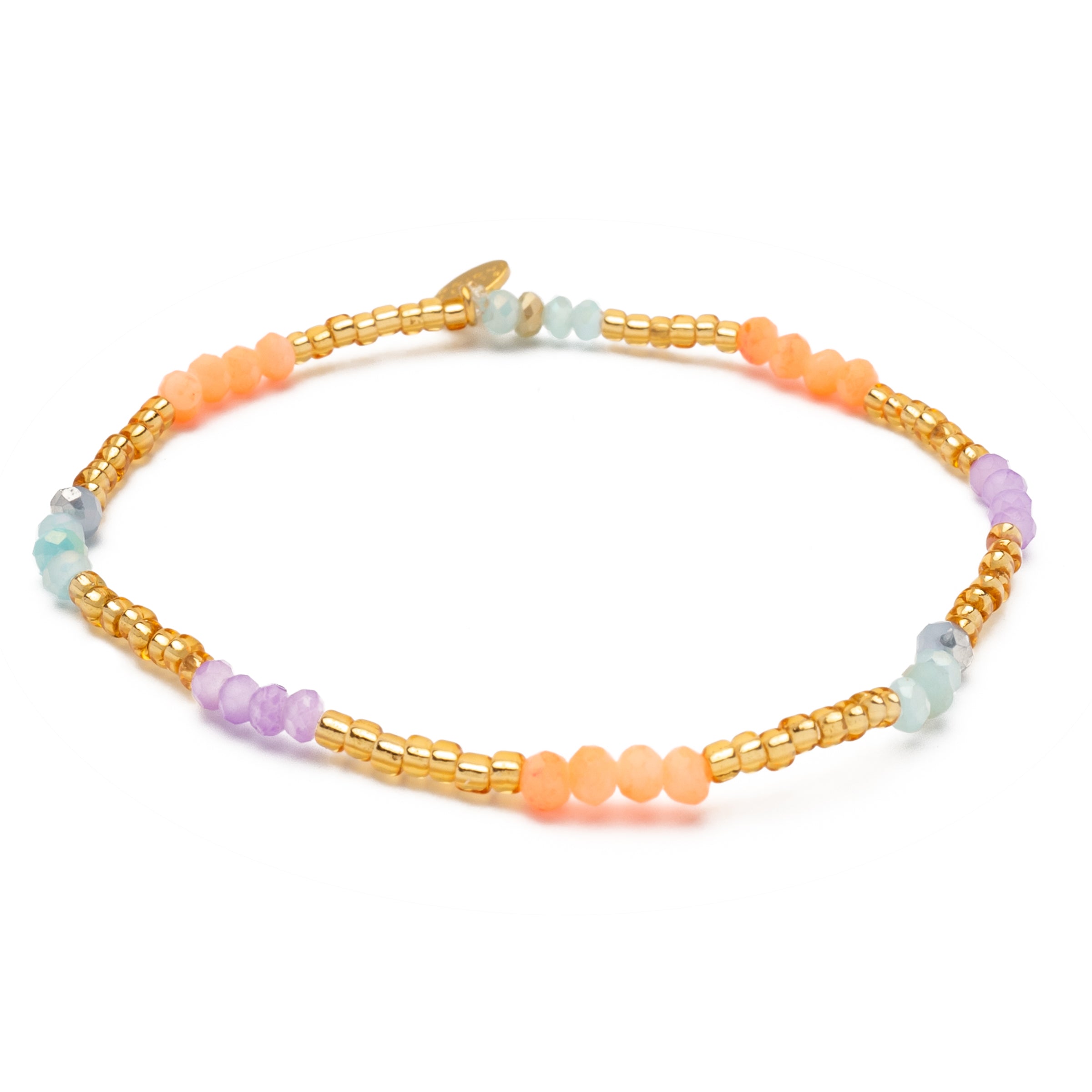 Unser elastisches Armband Fresh Lily aus der Lotus-Serie entzückt mit goldenen Perlen und farbigen Highlights in Neon Coral, Lilac und Light Blue. In unserem Sortiment findest du auch die passende Halskette Fresh Lily.