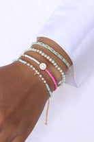 Die Armbändchen aus unserer Mino-Serie haben einen verstellbaren Knotenverschluss für ein einfaches An- und Ausziehen. Sie messen ca. 24 cm und passen jedem Handgelenk.