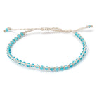 Your time to shine! Unser Armband Mino verbindet kräftige Farbakzente mit einem unwiderstehlichem Glow. Die türkisfarbenen Glaskristalle sind reihum mit silberfarbenen Textil zu einem funkelnden Armband geknüpft.