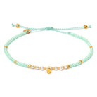 Unser goldenes Pura-Armband in Fresh Mint wird dein liebster Urlaubsbegleiter werden. Perlen in Mintgrün und acht synthetische Süßwasserperlen reihen sich elegant um dein Handgelenk. Strahlender Mittelpunkt ist ein vergoldetes Coin-Plättchen.