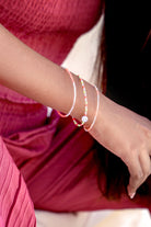 Das Armband ist 17 cm lang und kann um 2 cm verlängert werden. Alle verwendeten Metallteile sind aus versilbert-rhodiniertem Messing und stammen aus Deutschland und Italien.
