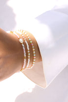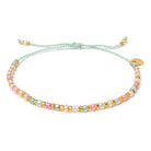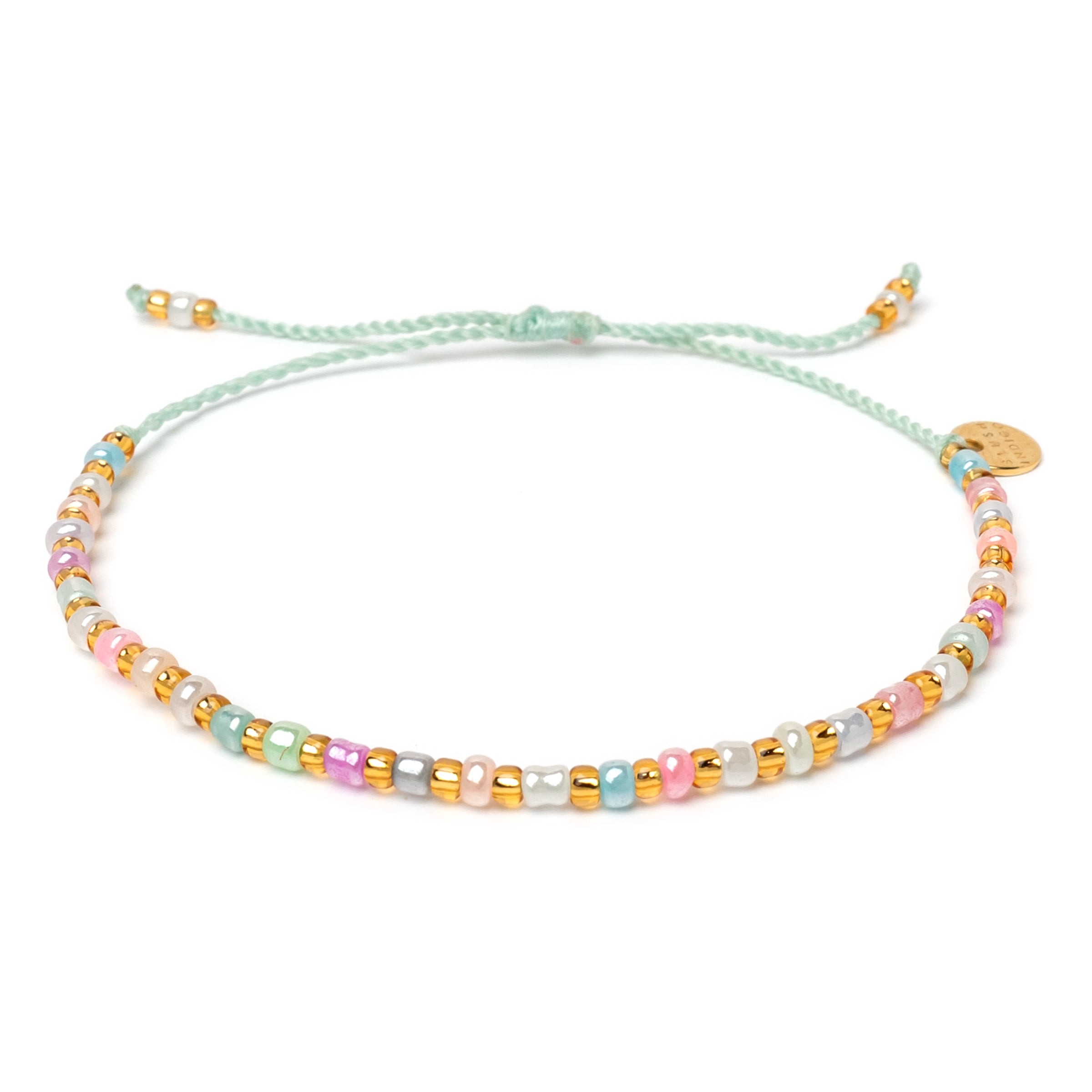 Das Bändchen Birthday Sprinkles ist der Zuckerguss auf deiner Geburtstagstorte: Bunte Roccaille-Perlen in den schönsten Bonbon-Farben versüßen dein Handgelenk und wechseln sich mit goldenen Perlen ab. Das mintgrüne Bändchen hat einen verstellbaren Knotenverschluss und mit Perlen verzierte Endstücke.