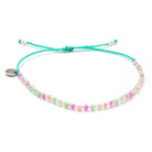 Das Armband Corfu aus unserer Sweet-String-Serie wurde mit Sorgfalt und Liebe zum Detail handgefertigt. Perlen in Mintgrün und Flieder wechseln sich mit silbernen Roccaille-Perlen ab. Die Corfu-Serie umfasst weitere Armbändchen, Fußkettchen und eine Halskette.