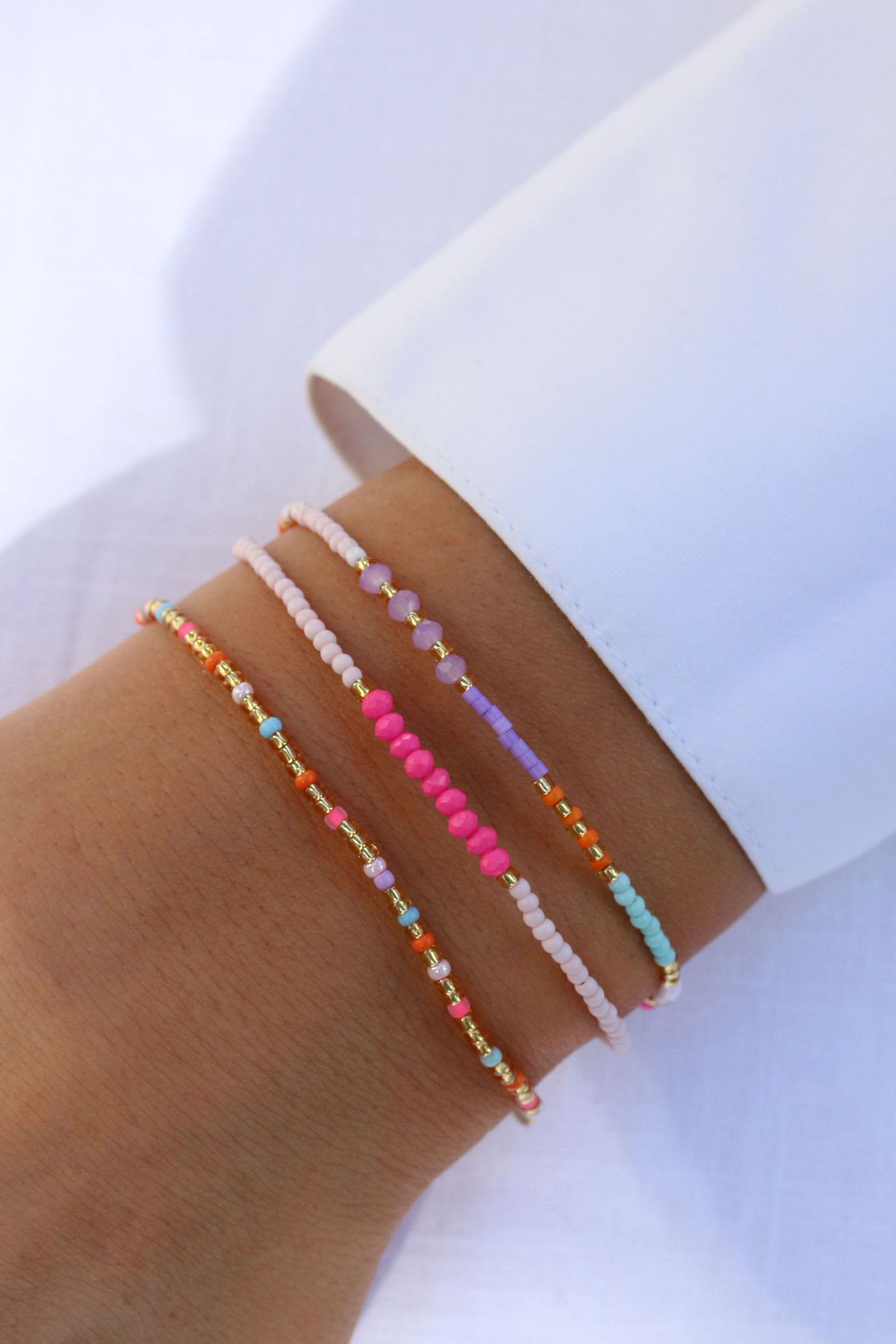 Santorini gilt vielen als die schönste und farbenprächtigste griechische Insel. Nicht weniger prächtig in Farbe ist unser Armband Santorini mit matten Rocaille-Perlen in Mintgrün, Flieder und Orange. Die Santorini-Serie aus unserer Greece Collection umfasst weitere Armbändchen, Fußkettchen und eine Halskette. .