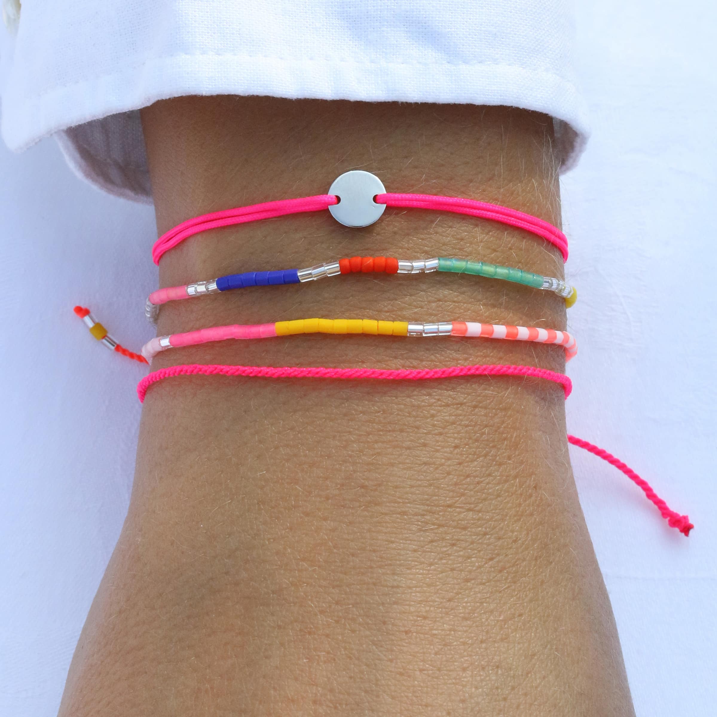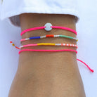 Das gezwirbelte True Temple Armband in Neon Pink ist inspiriert vom traditionellen Tridatu Tempel-Armband, welches jeder gläubige Hindu in Bali trägt.