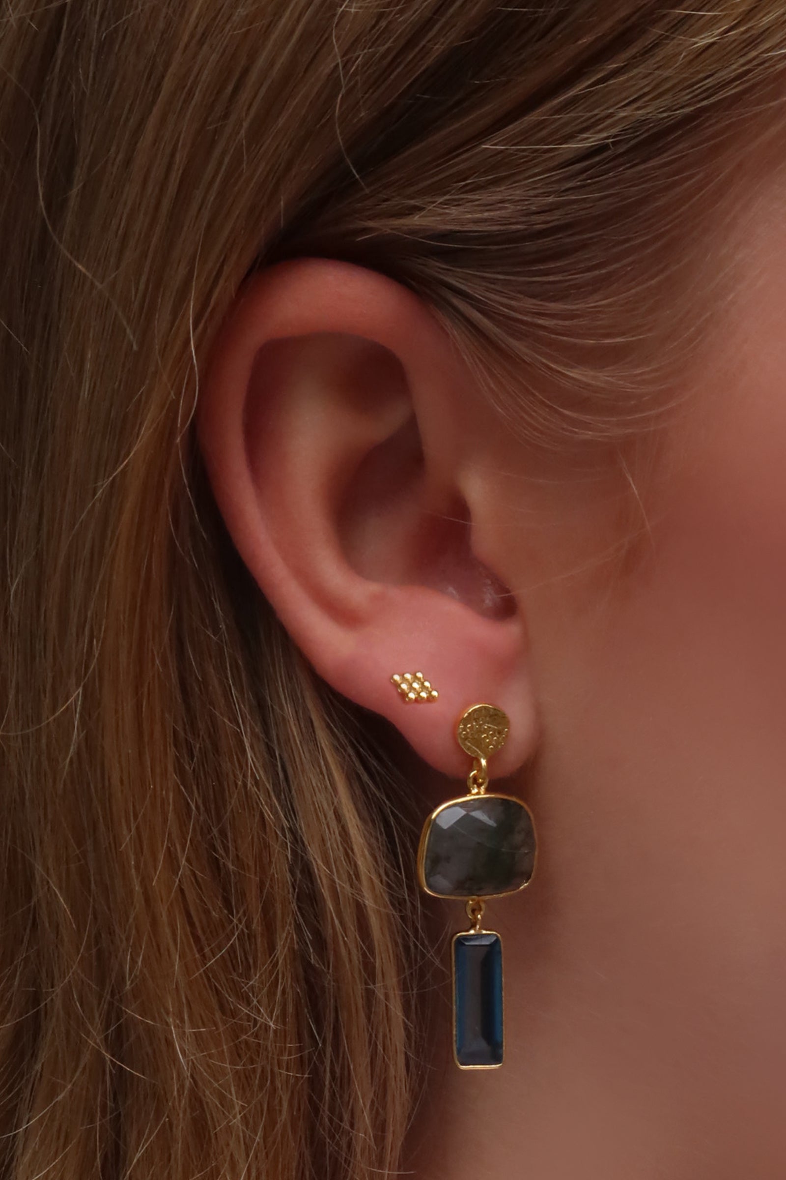 Ohrringe Jody - Grüner Moosachat und blauer Iolit