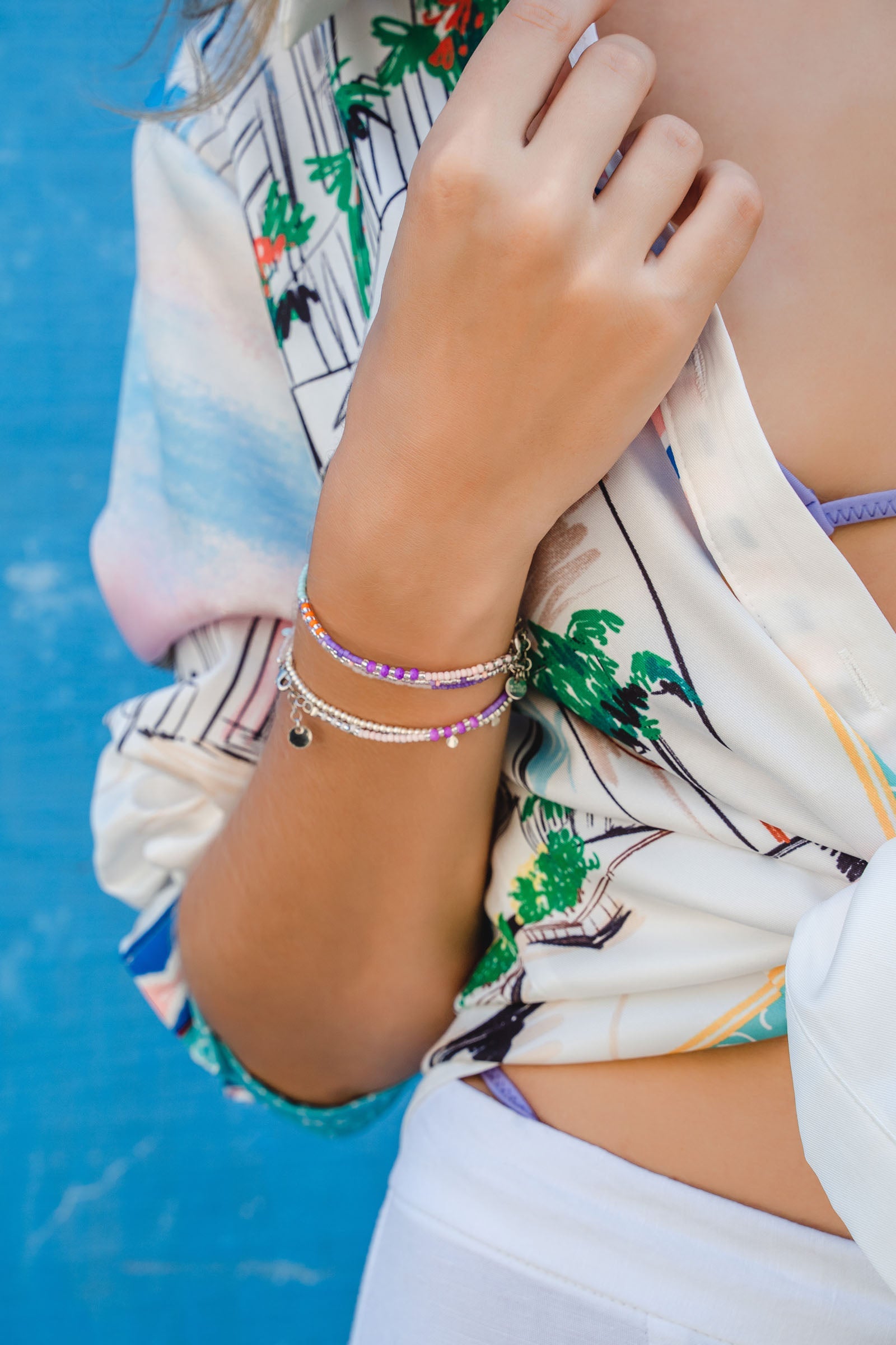 Unser silbernes Be Blush Armband Milos ist eine betörende Melange aus Flieder, Lila und Blush Rose. Silberne Rocialles Perlen setzen elegante Highlights. Die Milos-Serie aus unserer Greece Collection umfasst weitere Armbändchen, Fußkettchen und eine Halskette.
