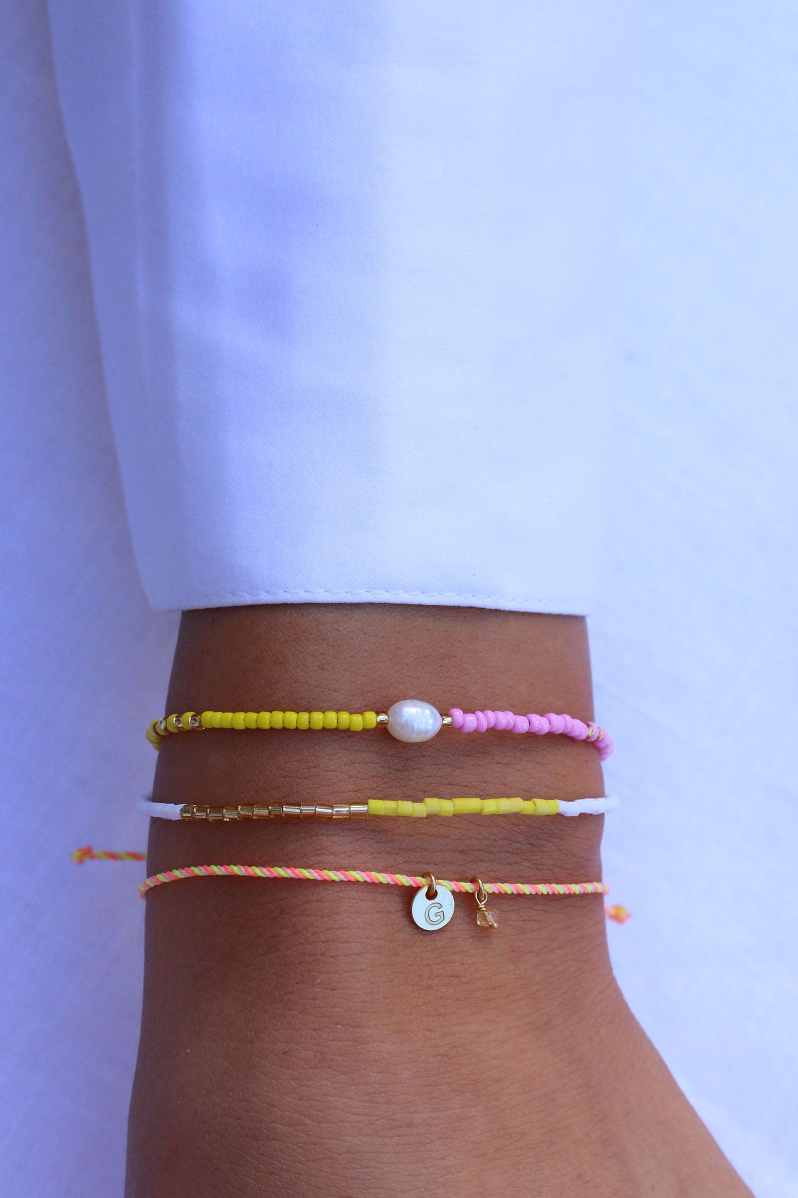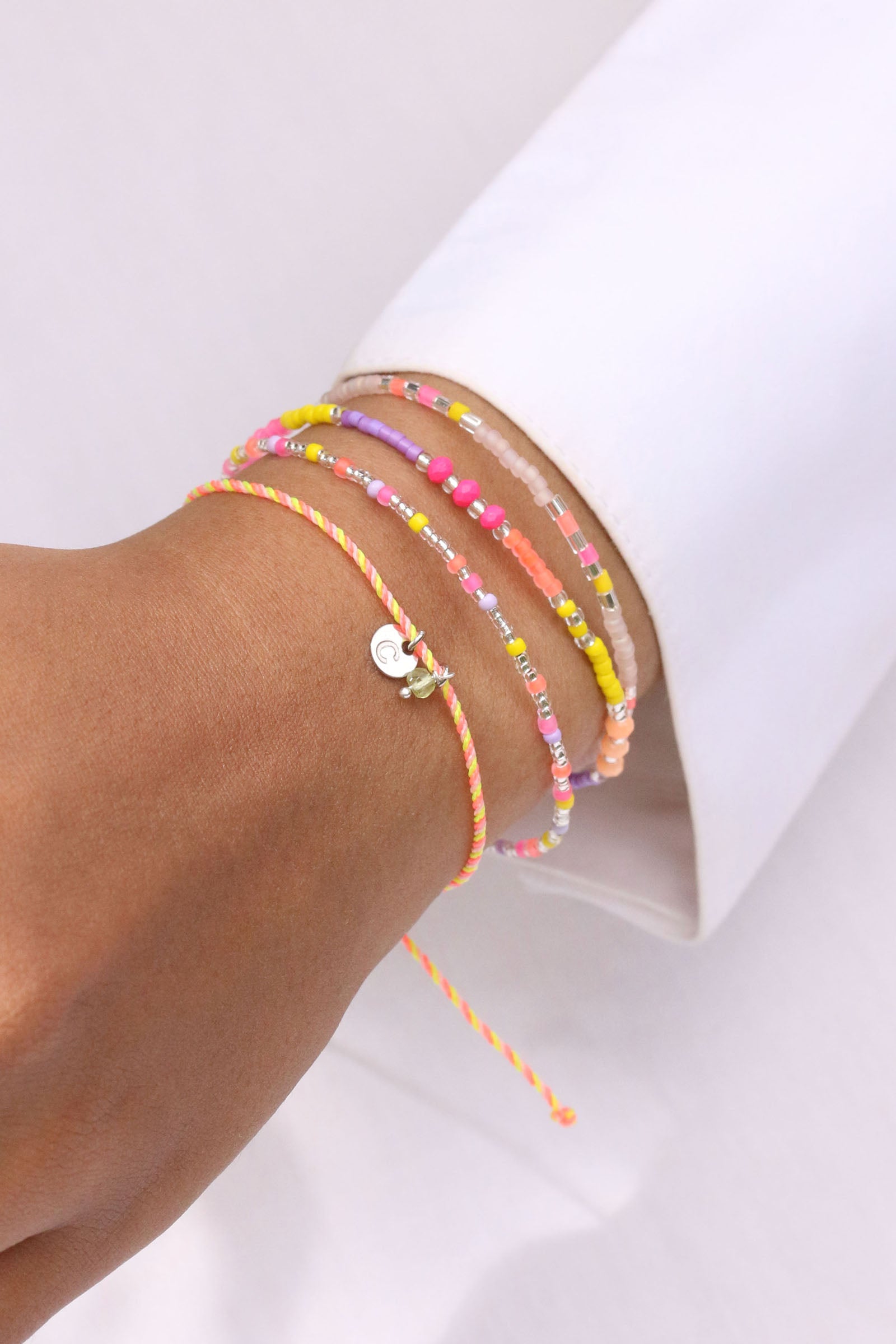 Armband True Temple mit Buchstaben und Birthstone - Coral Lemon