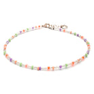 Die Farben unseres Fußkettchens Rhodos strahlen in soften Neon-Tönen um die Wette. Roccailles Perlen in Frosted Coral, Mintgrün und Flieder sind wild gemixt, silberne Perlen verleihen eine elegante (Best)note. Die Rhodos-Serie umfasst weitere Fußkettchen, Armbändchen und eine Halskette.