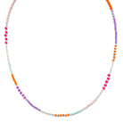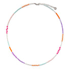 Santorini gilt vielen als die schönste und farbenprächtigste griechische Insel. Nicht weniger prächtig in Farbe ist unsere silberne Halskette Santorini mit matten Rocailles Perlen in Mintgrün, Flieder und Orange. Ein visuelles Highlight sind die facettierten Glaskristalle in Neon-Pink und Violett.