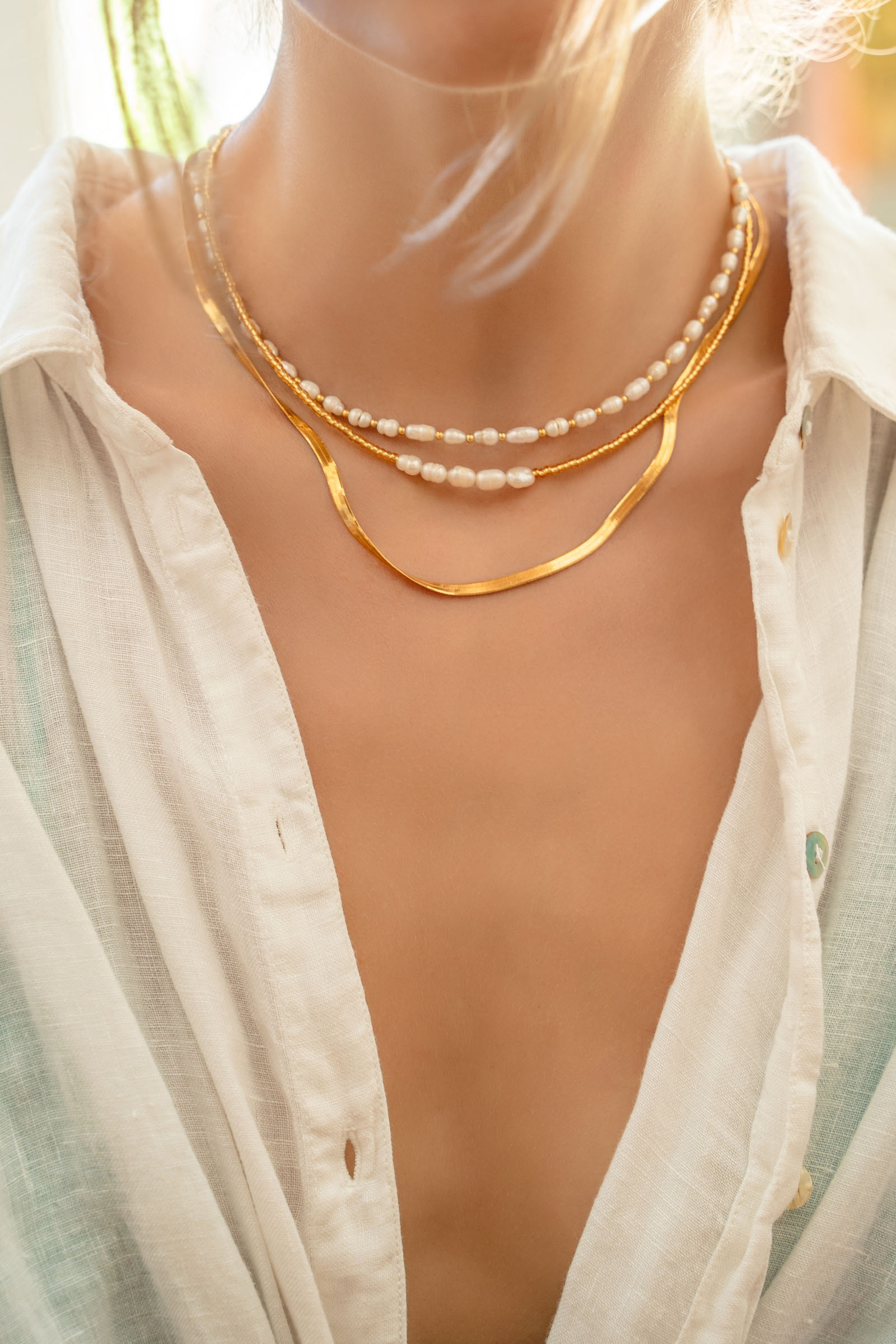 Die goldenen Akzente harmonieren ausgezeichnet mit der natürlichen Schönheit der Perlen und machen die Kette zu einem stilvollen Accessoire für jeden Anlass. In unserem Sortiment gibt es auch das passende Armbändchen Java und weitere Schmuckstücke mit Süßwasserperlen.
