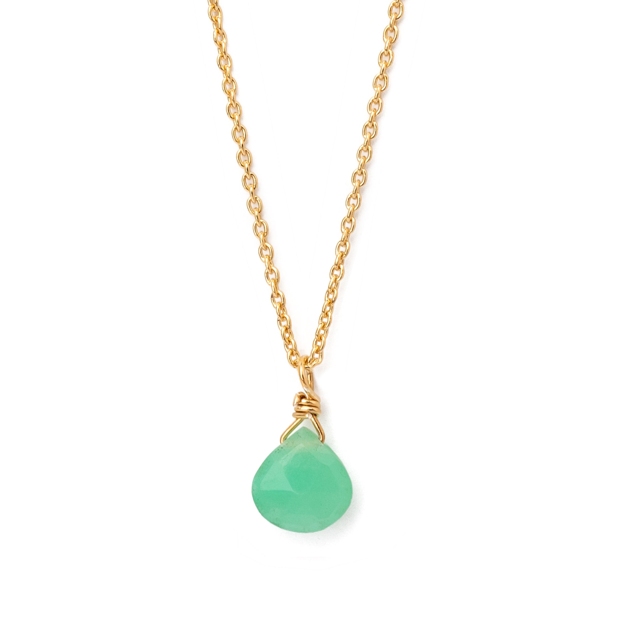 Unsere Halsketten aus der Jewel-Serie sind ein zartes Schmuckstück für die Ewigkeit. Strahlender Mittelpunkt ist ein natürlicher grasgrüner Chrysopras in Tropfenform.