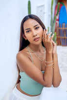 Unser Model trägt die Kette mit einer Länge von 55 cm.