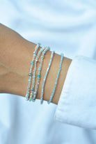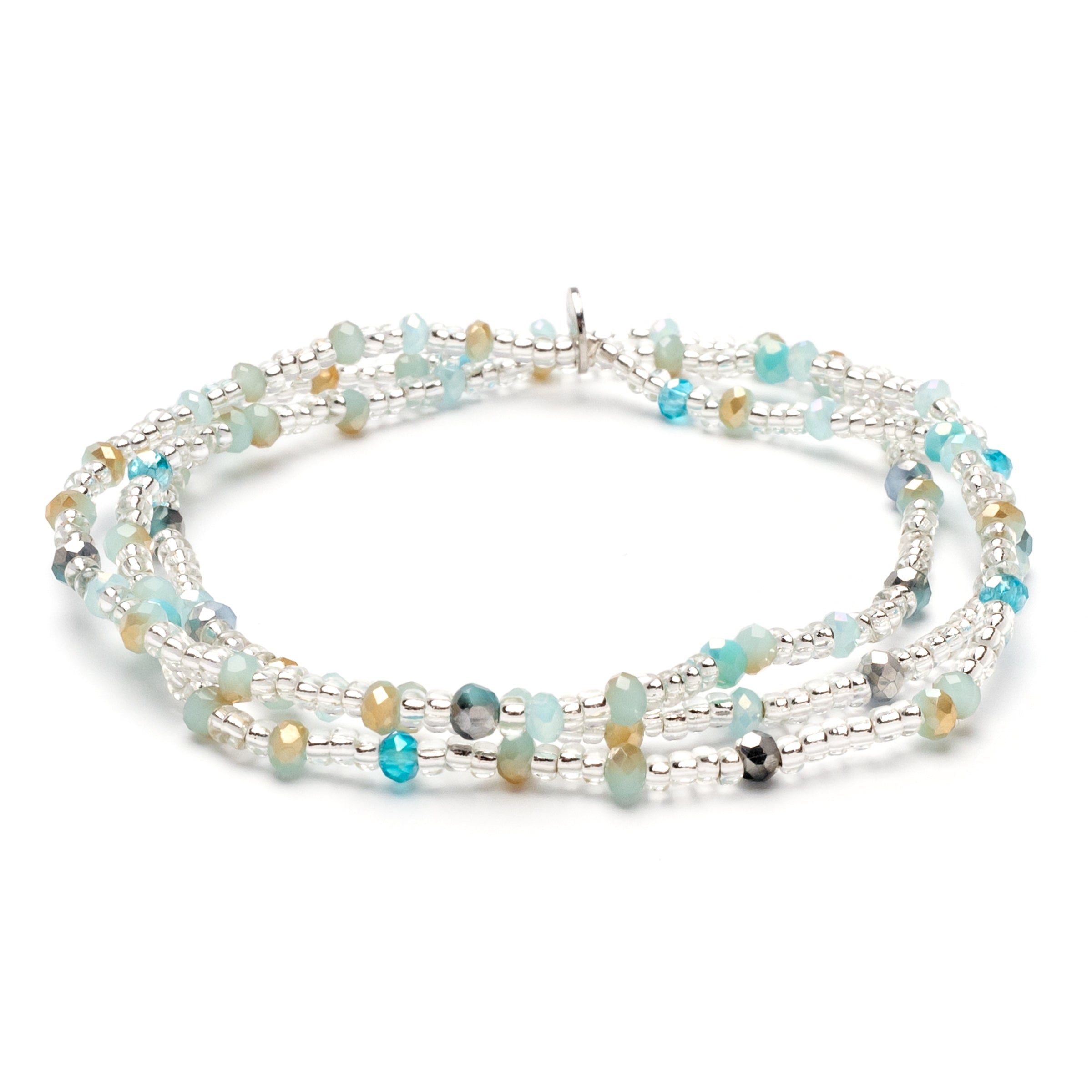 Die silberne Tiara Kette in Lake Blue Crystal ist ein wahres Multitalent, denn sie ist Halskette und Armband in einem Schmuckstück. Silberne Perlen und facettierte Kristallperlen in unterschiedlichen Hellblautönen wechseln sich auf dem elastischen Nylonband ab.