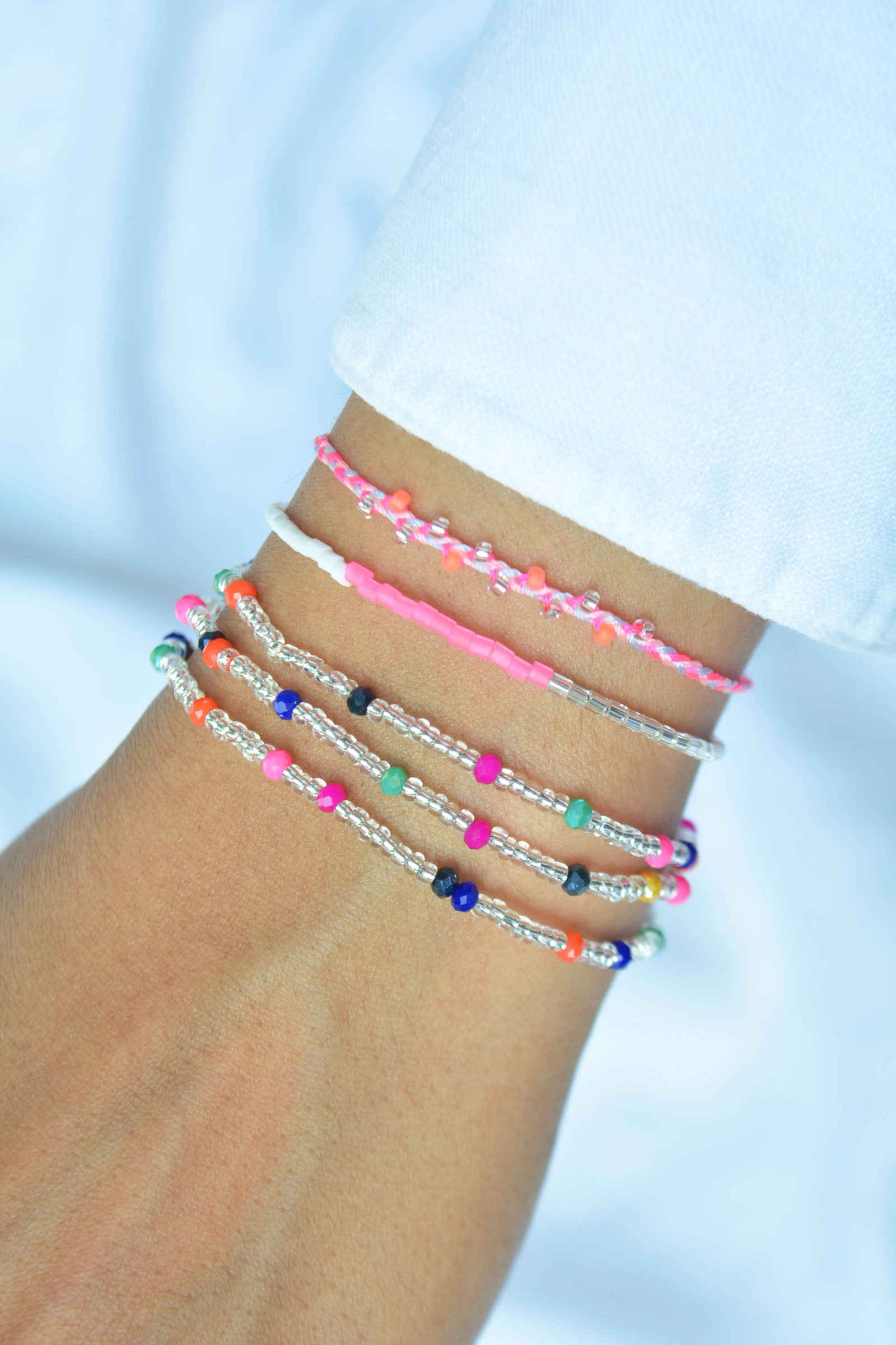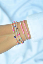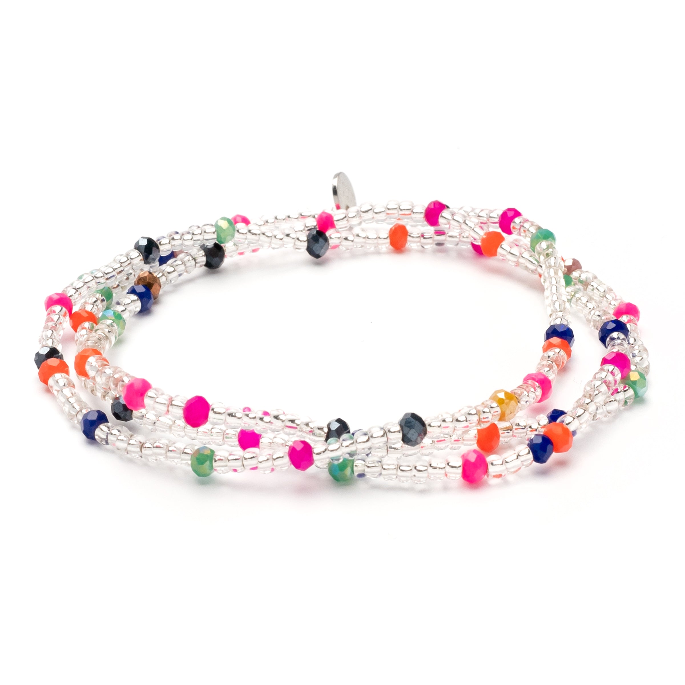 Die Tiara Kette in Mixed Crystal ist ein wahres Multitalent, denn sie ist Halskette und Armband in einem Schmuckstück. Silberne Perlen und facettierte Kristallperlen im bunten Farb-Mix wechseln sich auf dem elastischen Nylonband ab. Perlen in Neon-Pink, Orange, Dunkelblau, Mintgrün und Schwarz setzen farbige Highlights.