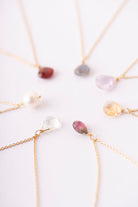 Die Kette ist 45 cm lang und kann nicht verlängert werden. Sie ist aus 925 Silber gefertigt und 24k vergoldet. Es kann zu minimalen Farbabweichungen kommen, denn die 7x9 mm großen Steine sind stets einzigartig in ihrer Form und Farbe.