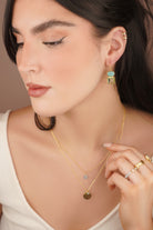 Die Kette ist 45 cm lang und kann nicht verlängert werden. Sie ist aus 925 Silber gefertigt und 24k vergoldet. Es kann zu minimalen Farbabweichungen kommen, denn die 7x9 mm großen Steine sind stets einzigartig in ihrer Form und Farbe.