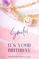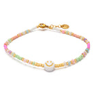 Das Bändchen  Smile, it's your Birthday ist der Zuckerguss auf deiner Geburtstagstorte: Mattweiße Perlen und bunte Roccailles Perlen in den schönsten Bonbon-Farben versüßen dein Handgelenk und wechseln sich mit goldenen Perlen ab. In der Mitte strahlt dich eine Smiley-Perle an. Zu unserer Birthday-Serie gehört auch das passende Isola-Armband mit Süßwasserperle und das Armband Birthday Sprinkles.
