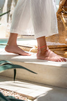 Das gezwirbelte Bändchen in Neon Coral bringt Farbe an dein Fußgelenk. Es ist solo oder in Kombination mit anderen Fußkettchen der perfekte sommerliche Beach-Begleiter.