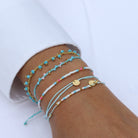 Das goldene Armband Taormina umspielt dein Handgelenk mit Perlen in Matt White, Neon Pink und Türkis mit vereinzelten goldenen Akzenten. Es eignet sich besonders zum Kombinieren mit den farblich passenden Armbändern Azzurro und Paolina aus unserer Amalfi-Serie.