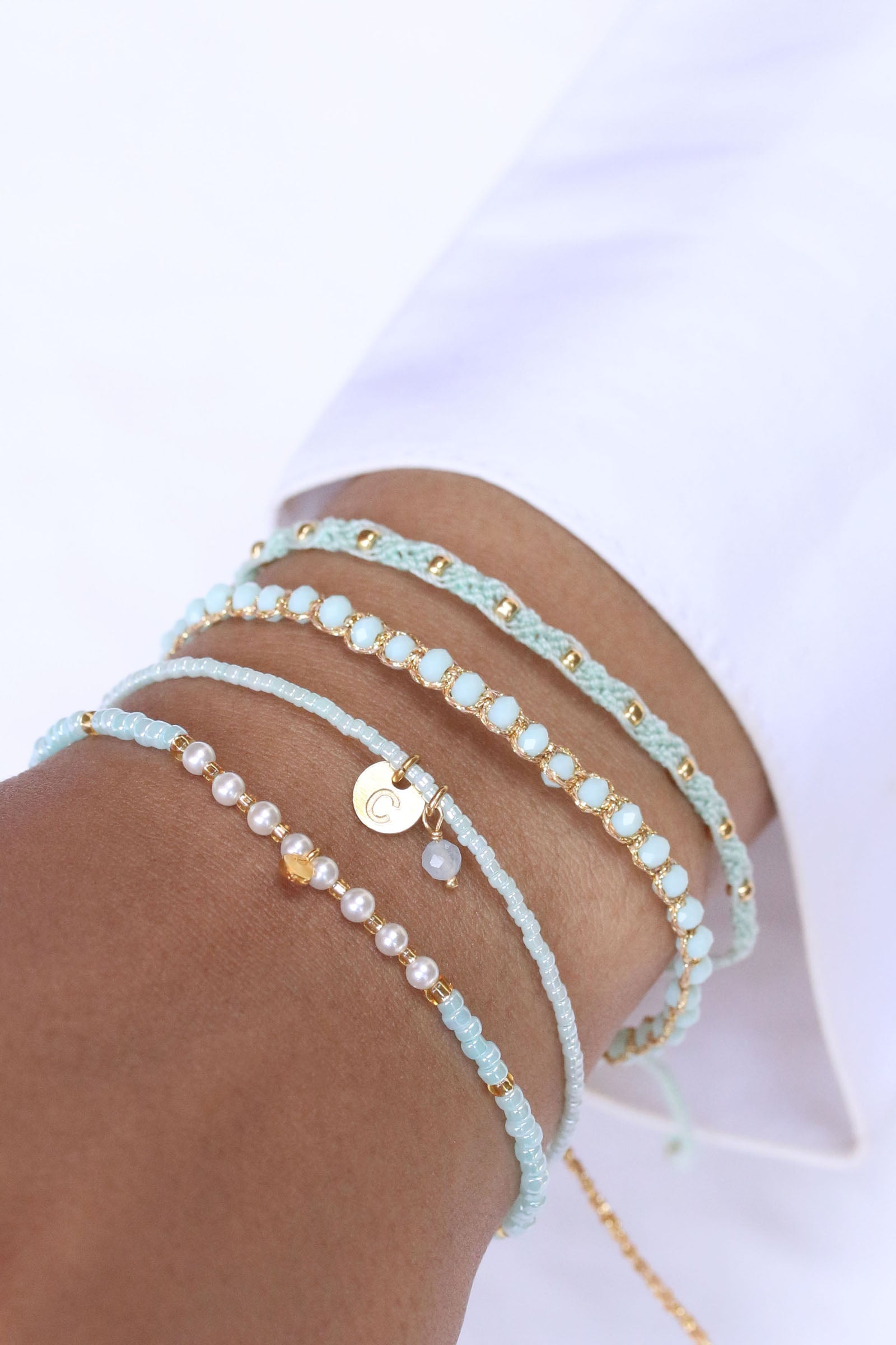 Armband Be Blush mit Buchstaben und Birthstone - Fresh Mint