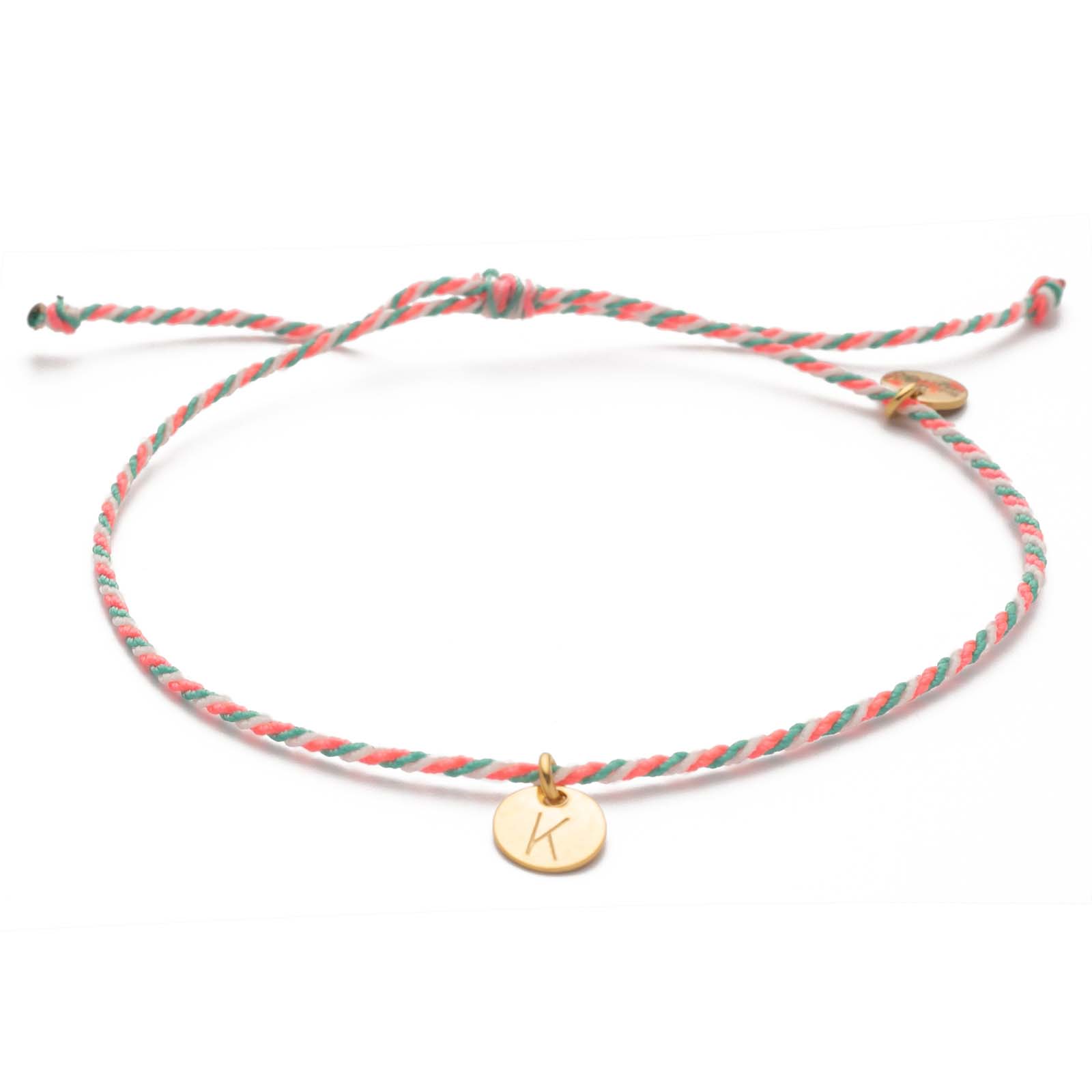 You name it! Aus dem gezwirbelten Nylonbändchen in Neon Coral, Mintgrün und Weiß kannst du dir mit 1-3 Buchstaben deiner Wahl ein ganz persönliches Schmuckstück zaubern. Gebe dazu einfach deine Wunsch-Buchstaben im vorgesehenen Feld ein. Wir haben auch einen "Love Letter" im Sortiment: Für ein Plättchen mit gestempelten Herzen hinterlasse ein #-Zeichen.