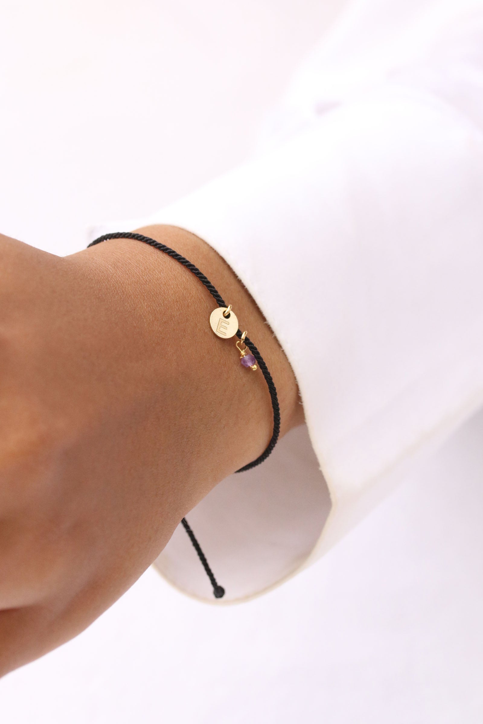 Armband True Temple mit Buchstaben und Birthstone - Schwarz