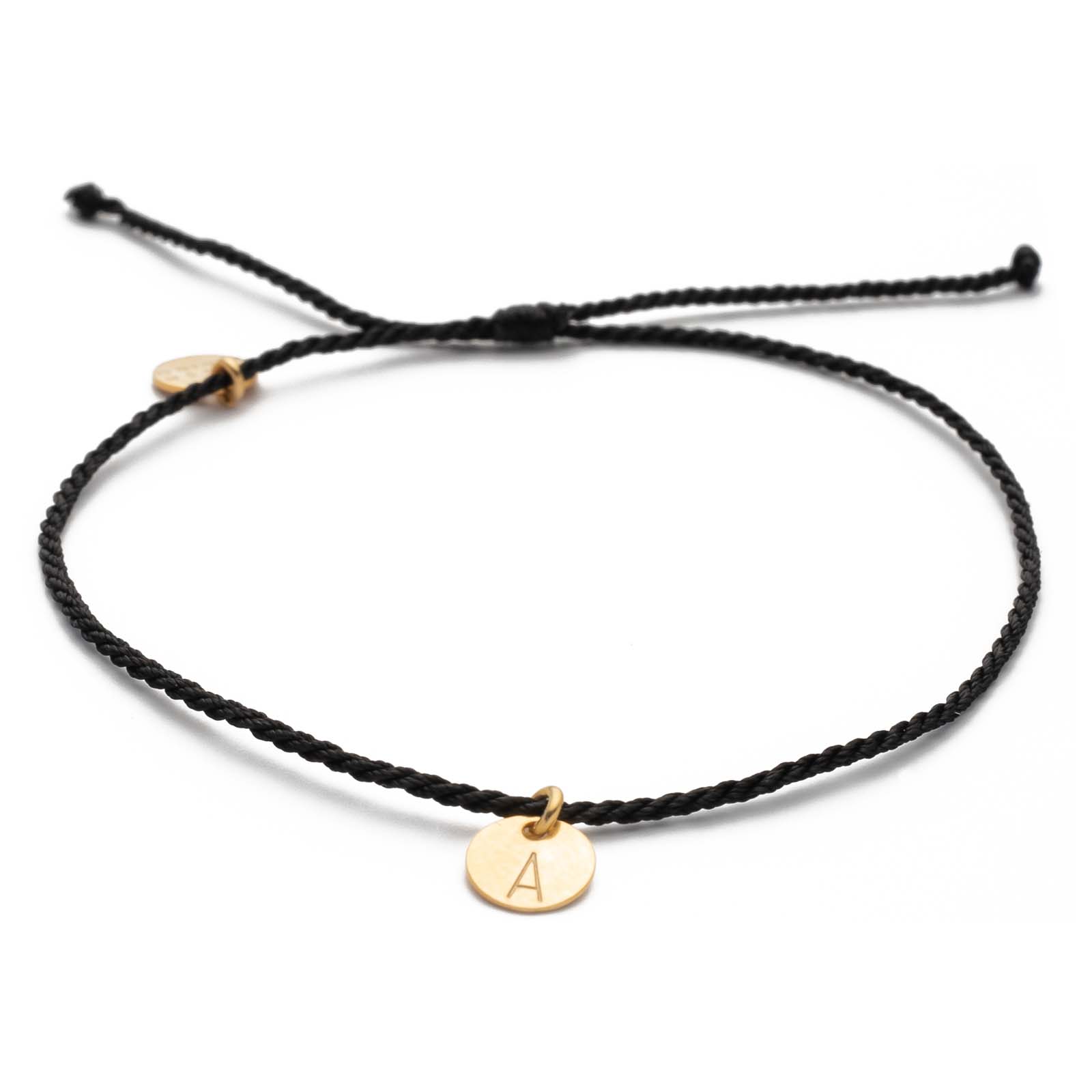 Das kreisrunde 6 mm Buchstaben-Plättchen ist erhältlich in gold und silber. Es wird von Hand gestempelt, daher gleicht keines dem anderen. Das Armband hat eine Länge von ca. 24 cm und kann durch den Knotenverschluss variiert werden. Alle verwendeten Metallteile sind aus 24k vergoldeten Messing und stammen aus Deutschland und Italien. Das Bändchen gibt es jetzt auch als Anklet für dein Fußgelenk.