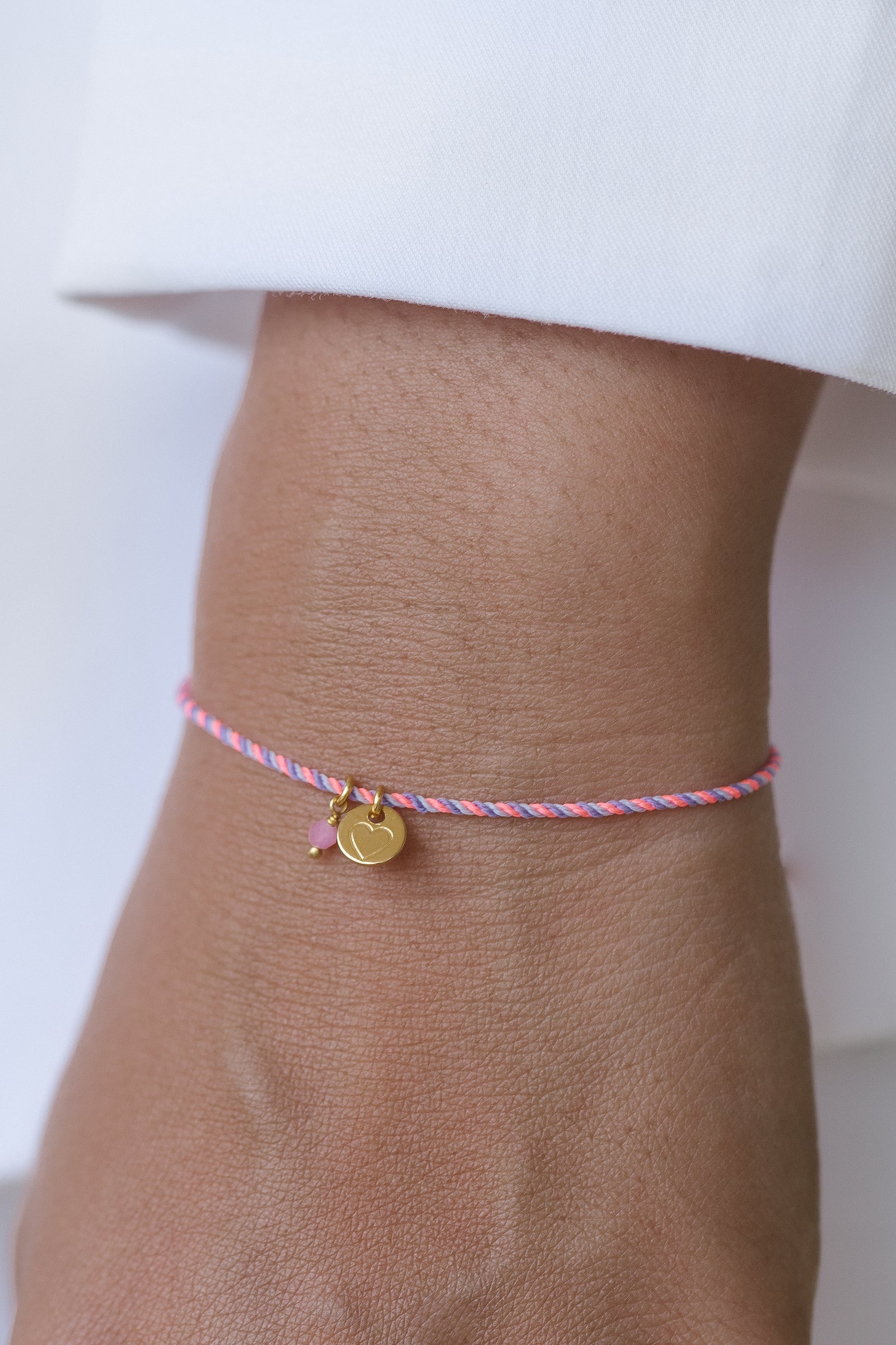 You name it! Aus dem gezwirbelten Nylonbändchen in Coral, Flieder und Hellblau kannst du dir mit 1-3 Buchstaben deiner Wahl ein ganz persönliches Schmuckstück zaubern. Gebe dazu einfach deine Wunsch-Buchstaben im vorgesehenen Feld ein. Wir haben auch einen "Love Letter" im Sortiment: Für ein Plättchen mit gestempelten Herzen hinterlasse ein #-Zeichen.